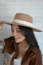 This wide-brim fedora features a unique cut-out trim design along the brim, adding a distinctive touch to its style. The twisted vegan leather band enhances its fashionable appeal. Crafted from 100% polyester, it ensures both durability and comfort. With its generous dimensions, it provides ample sun protection while making a fashion-forward statement.