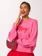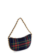 Measures L 8” x W 2” x H 4.75”; Handle 6.5”Made from polyester and wool with gold hardware, The Scottie Handheld Bag is your new holiday plus-one, dressed up in a festive plaid that’s as charming as it is chic. Featuring a single chain-wrapped handle, top zip closure, and one inner zip pocket, it’s made to hold your essentials in style. Whether you choose the bold red or classic navy colorway, this petite crescent silhouette adds instant cheer to any look. It's the perfect finishing touch for party outfits, cozy gatherings, or a gift-worthy accessory moment.