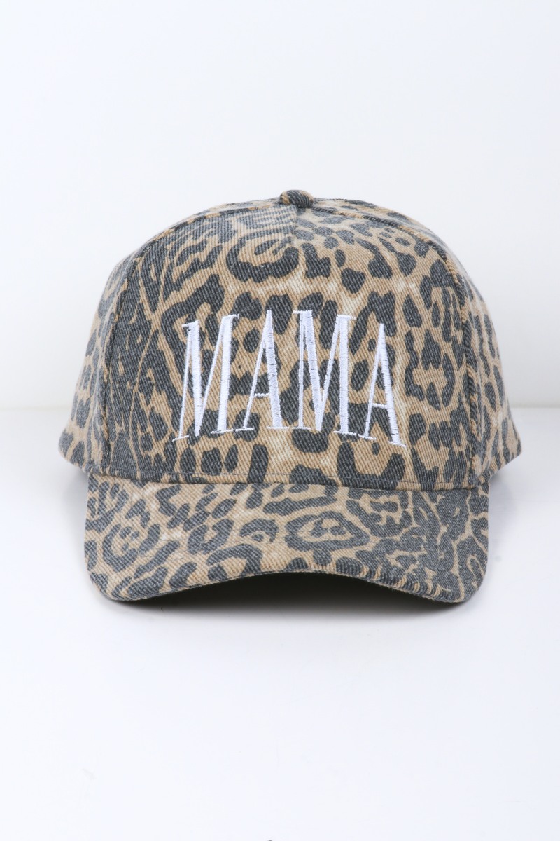 MAMA Embroidered Leopard Print 5 Panel Cap