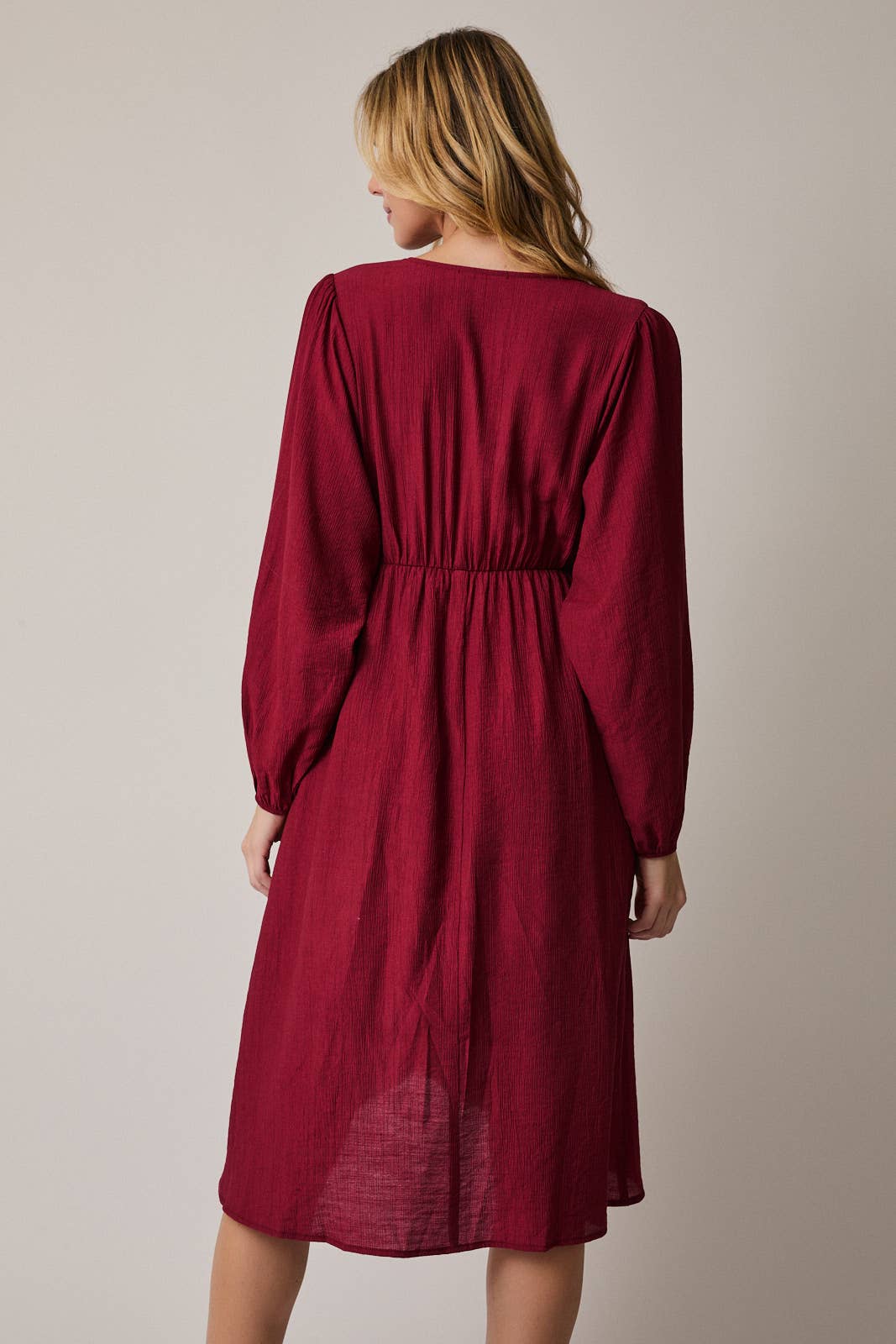 **PLUS** SURPLICE LONG SLEEVE FLARE HEM MIDI DRESS