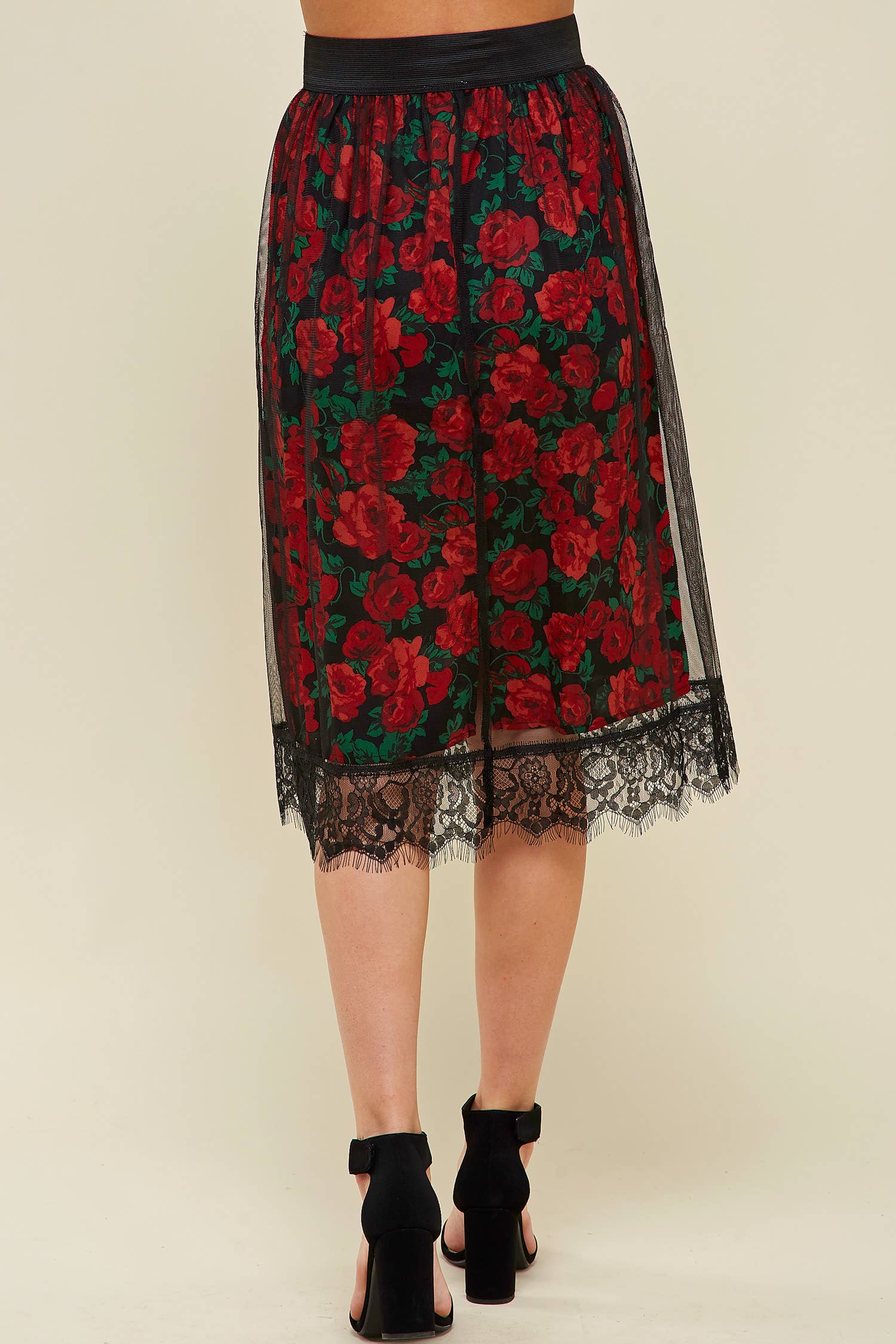 **HOLIDAY ITEM** SHEER ROSE LACE MIDI SKIRT WITH WAISTBAND MB5015330NLW
