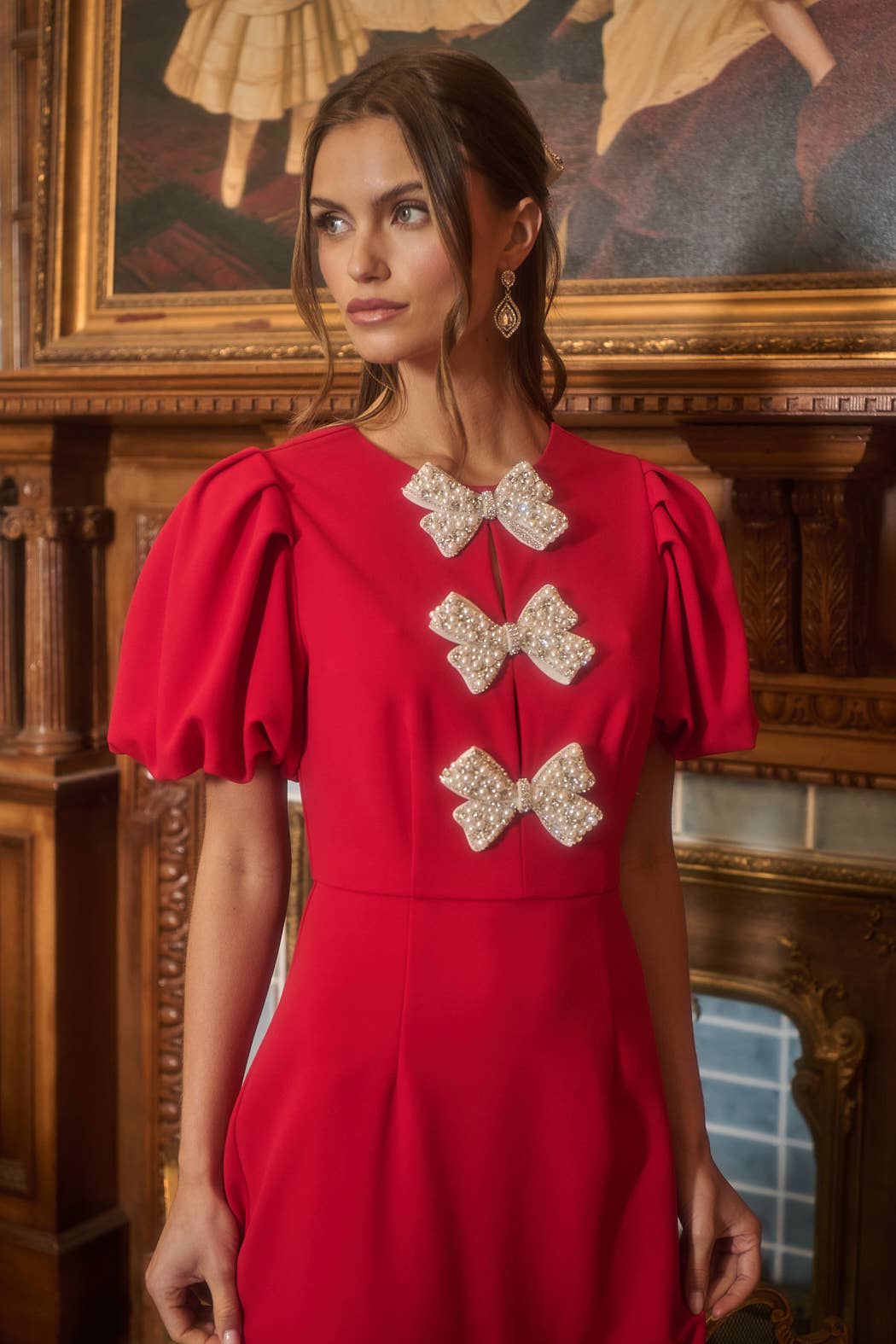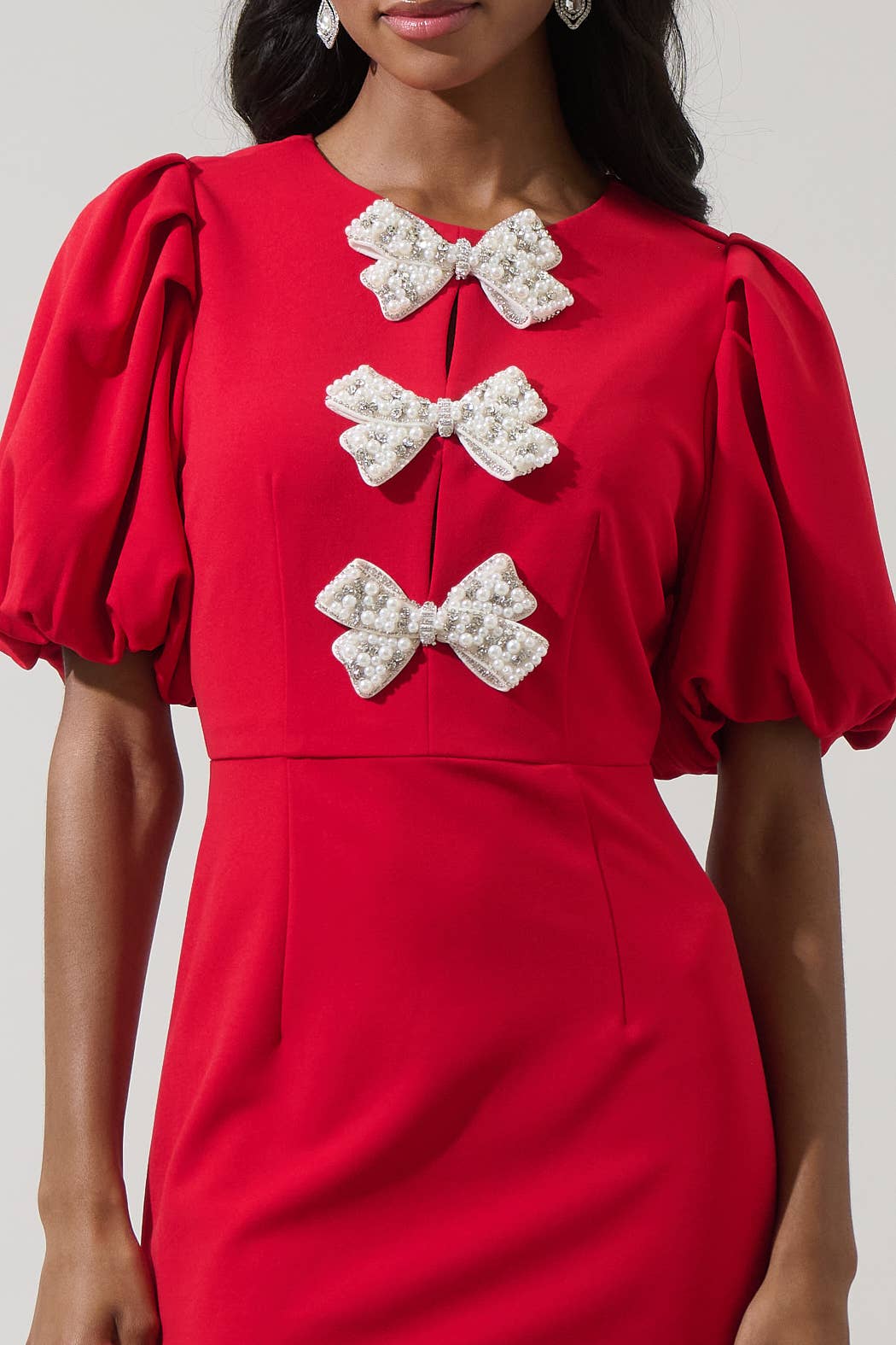 **HOLIDAY ITEM** Cherry Belle Pearl Bow Mini Dress