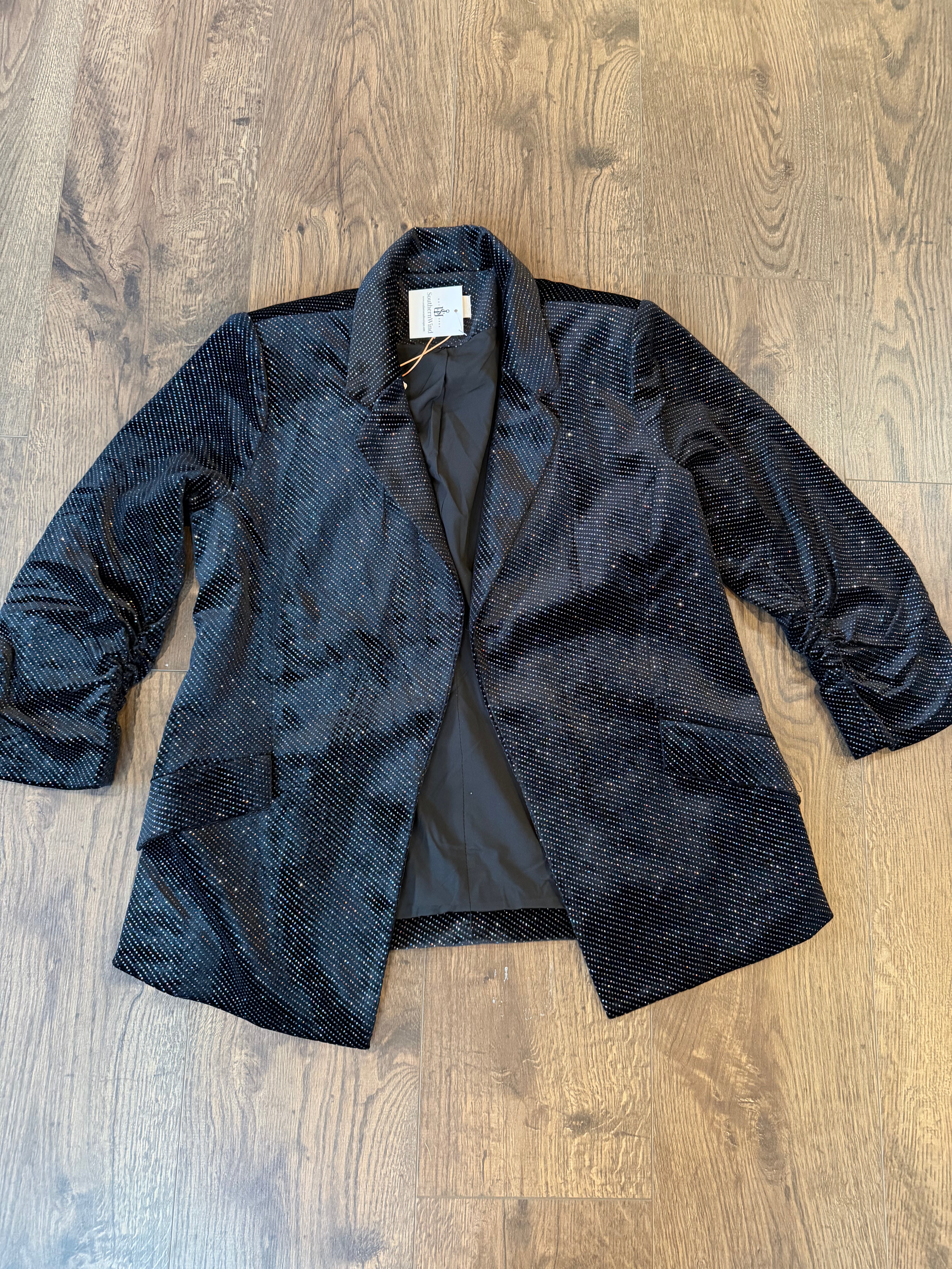 **HOLIDAY ITEM** Black Sparkle Velvet Blazer