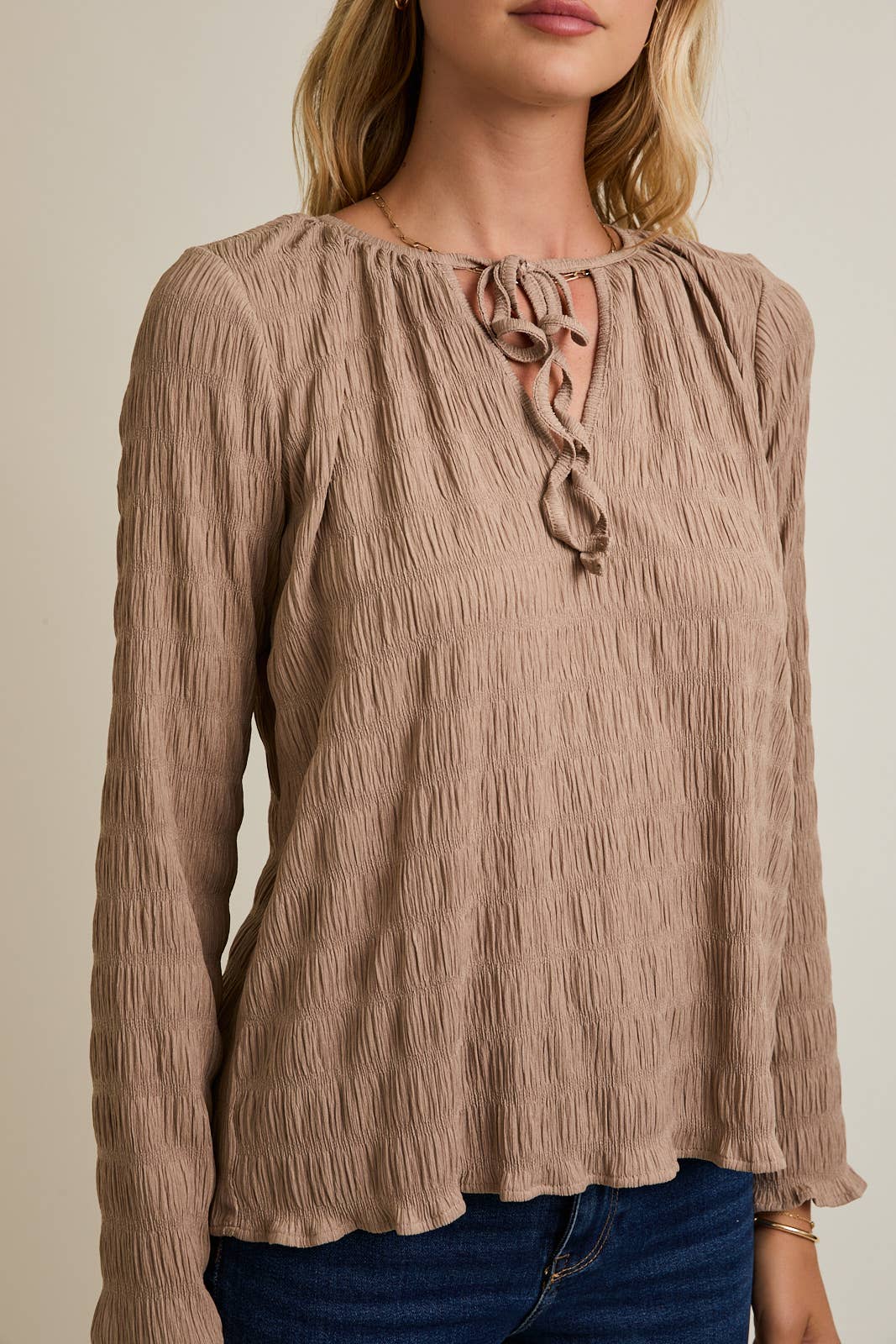 **PLUS** FRONT TIE LONG SLEEVE TOP