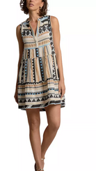 Neutral Aztec Sleeveless A-line Dress