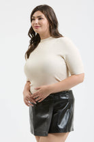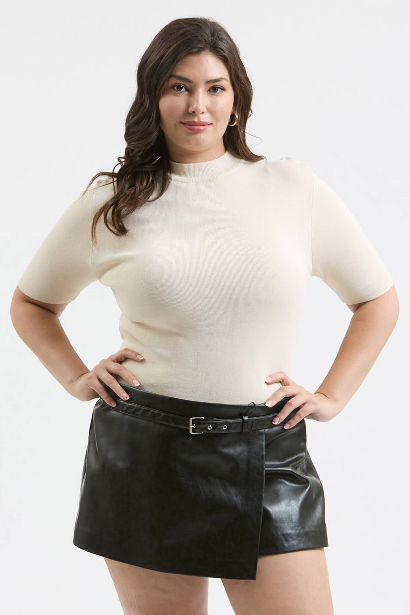PLUS SHORT SLEEVE MOCK NECK SWEATER KNIT TOP