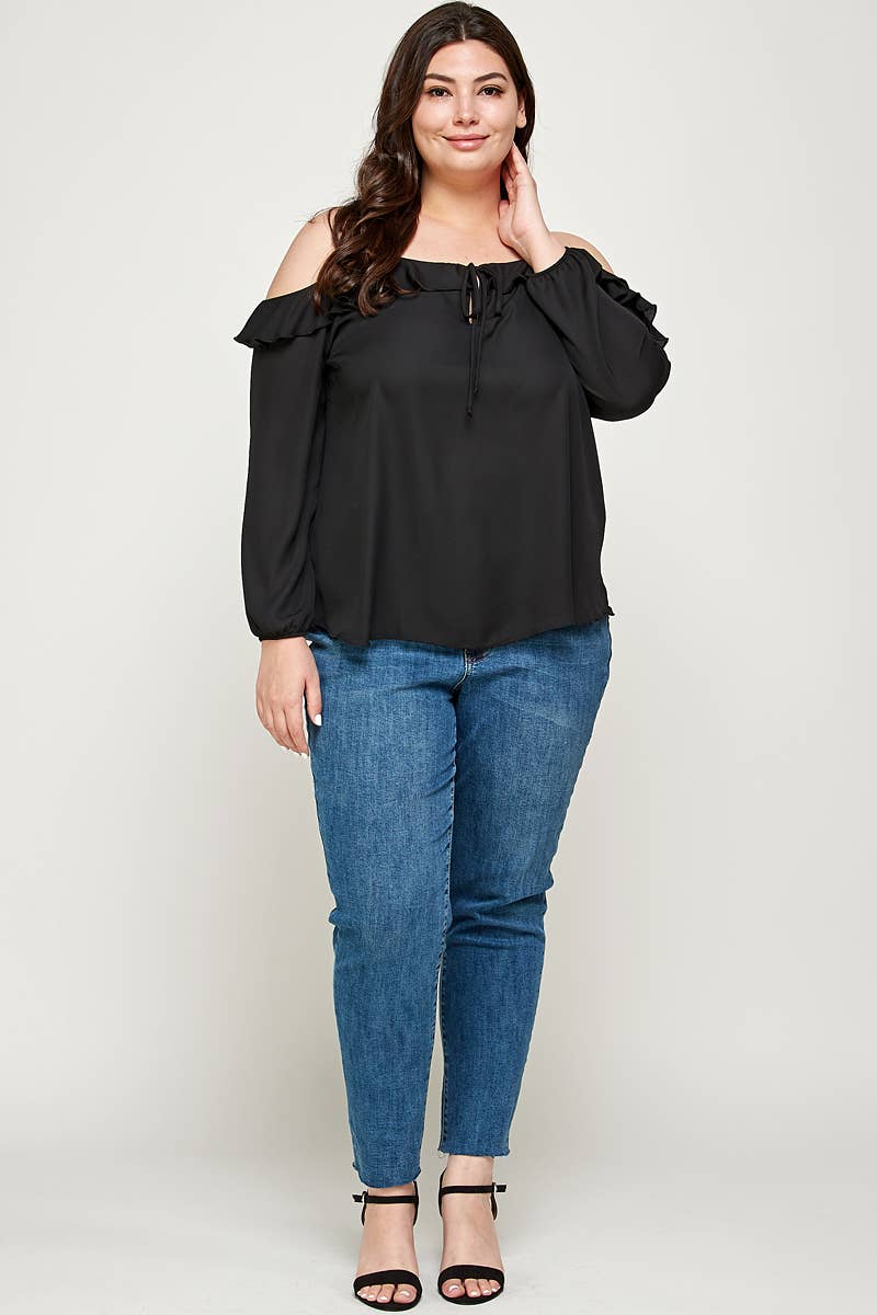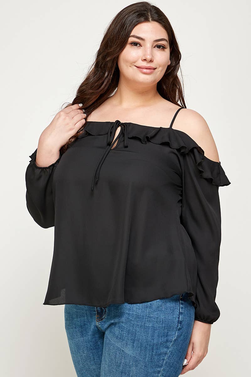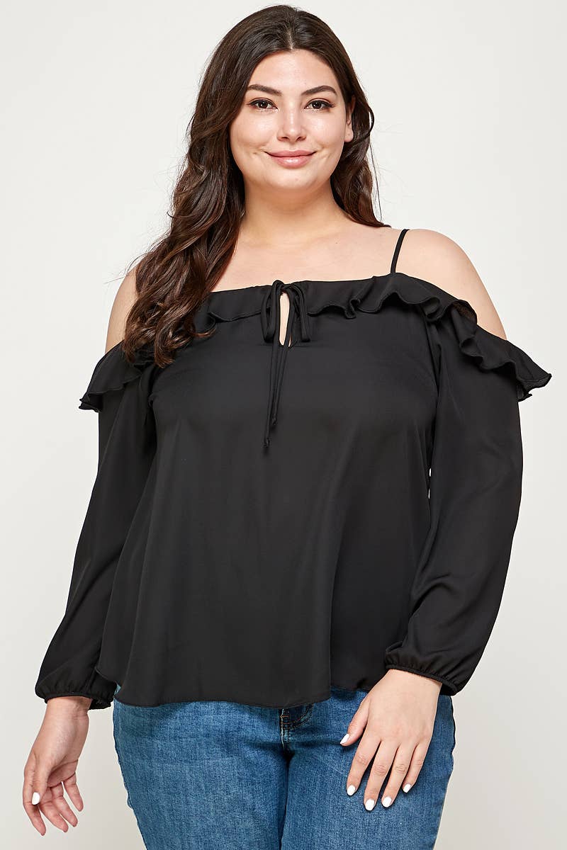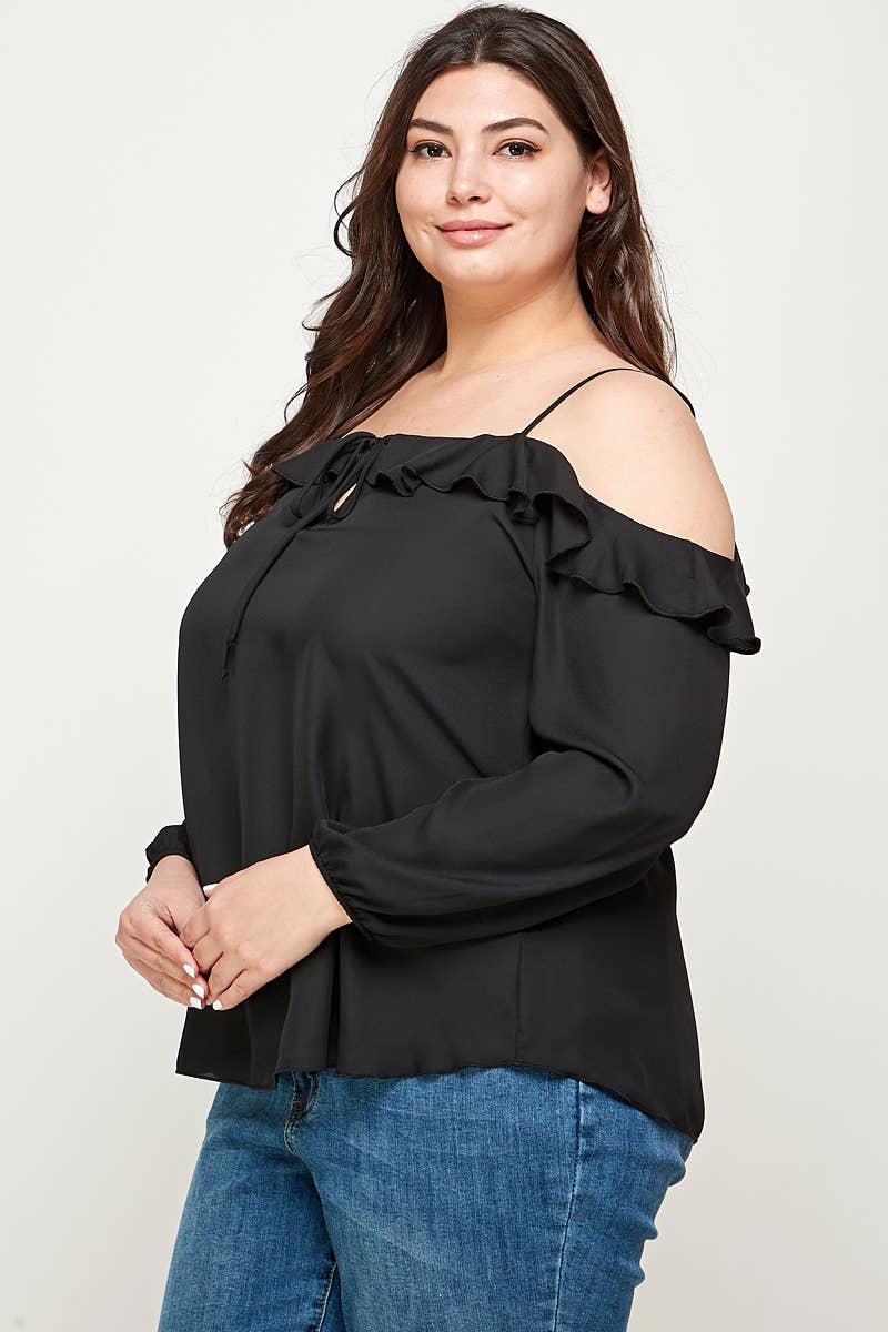 Plus Size Ruffled Cold Shoulder Top - WG16104-2T