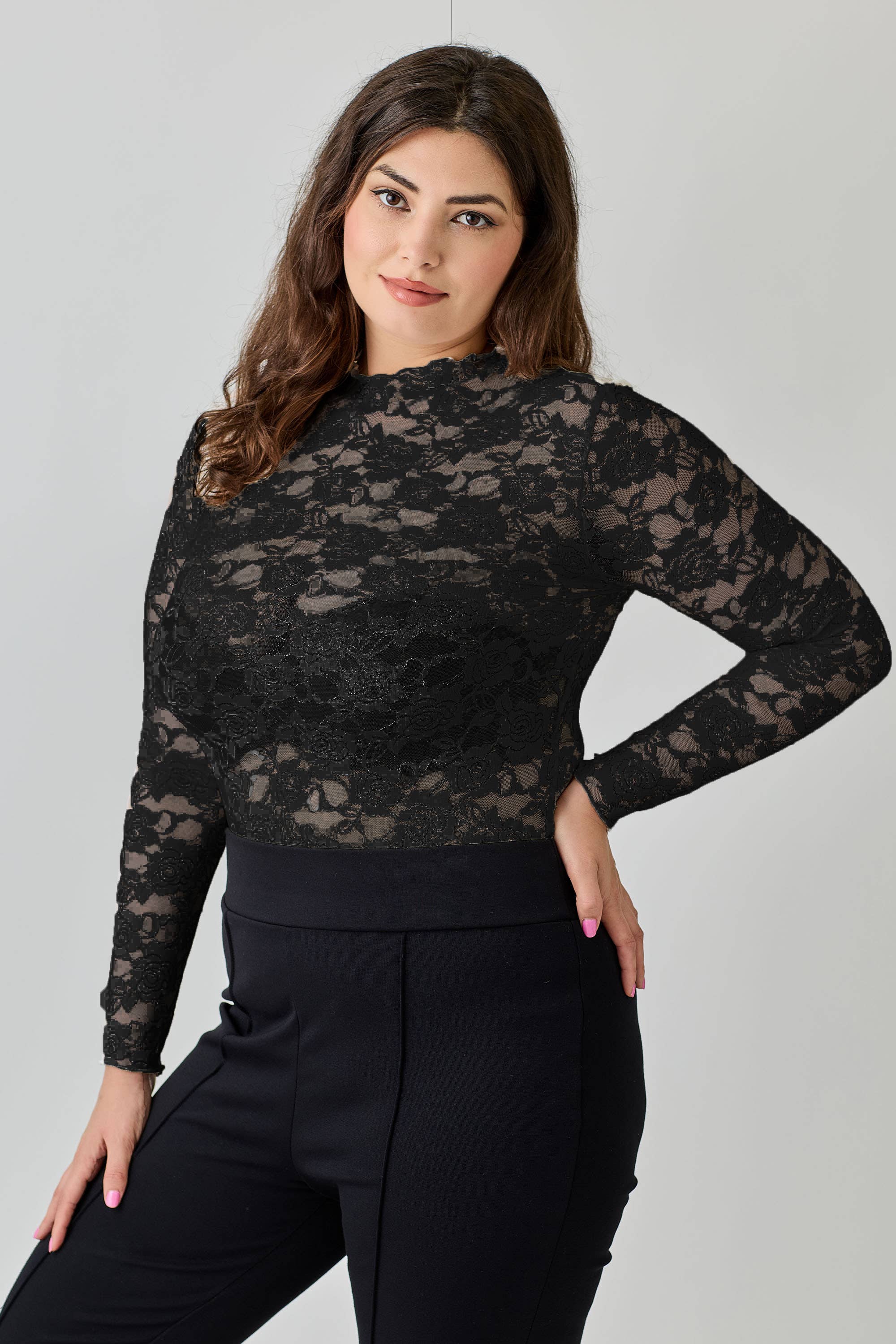 Plus Size Floral Lace Sheer Long Sleeve Top JK19025-T