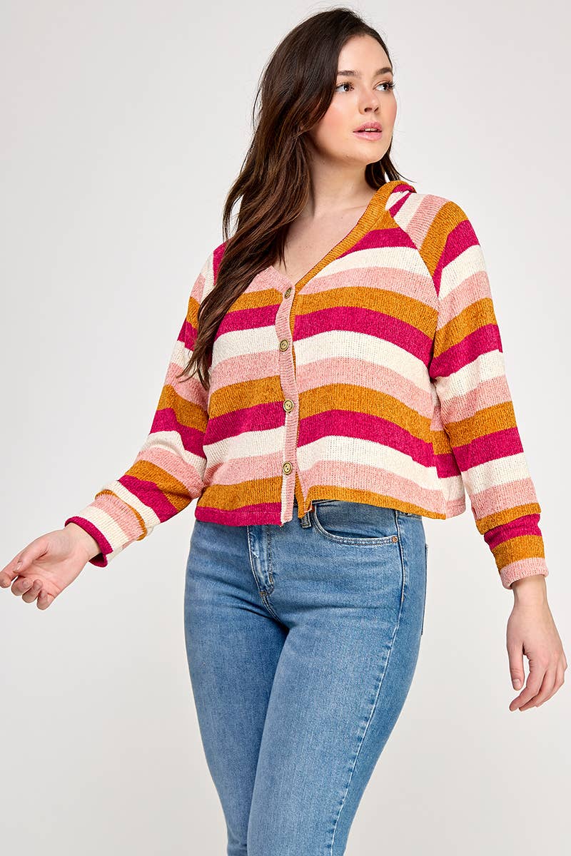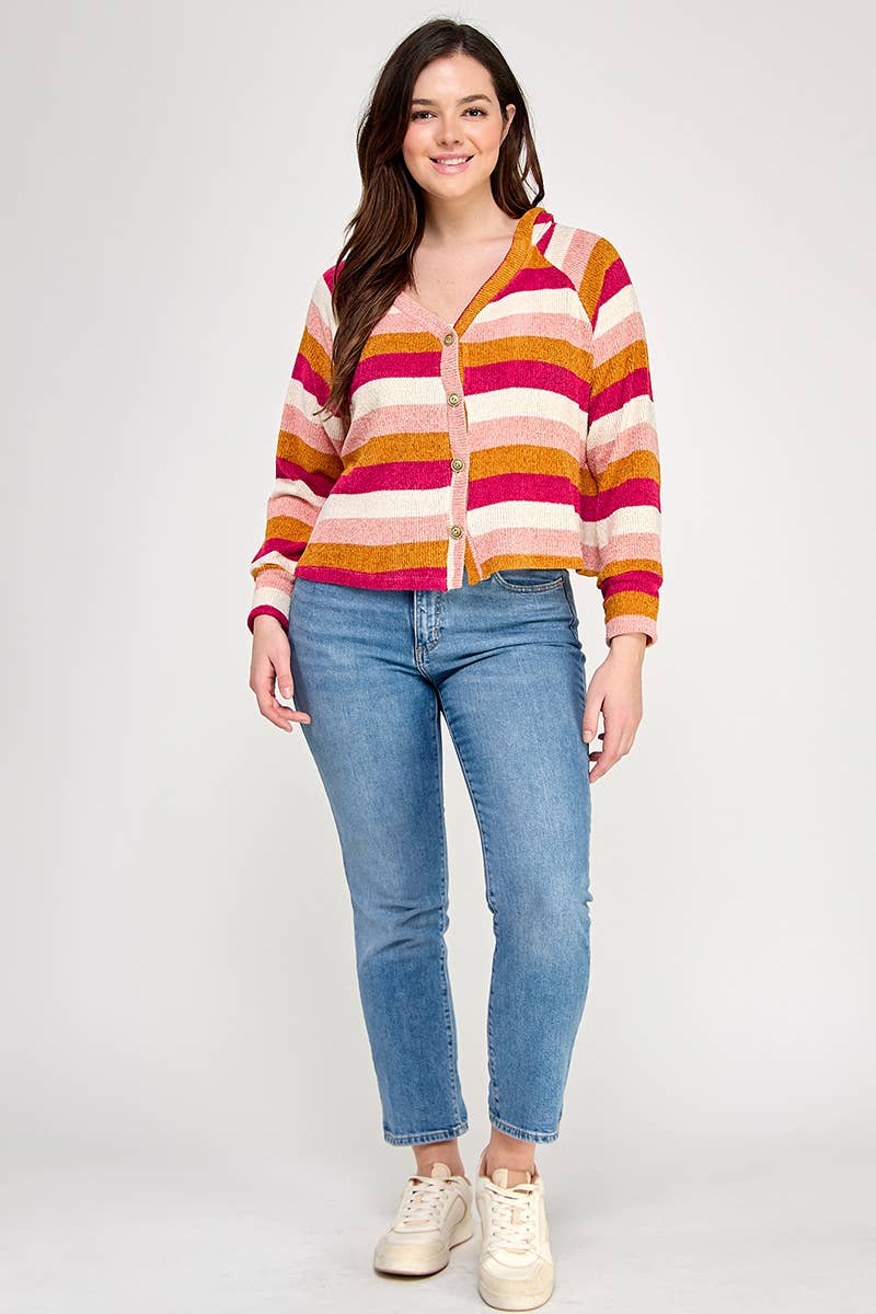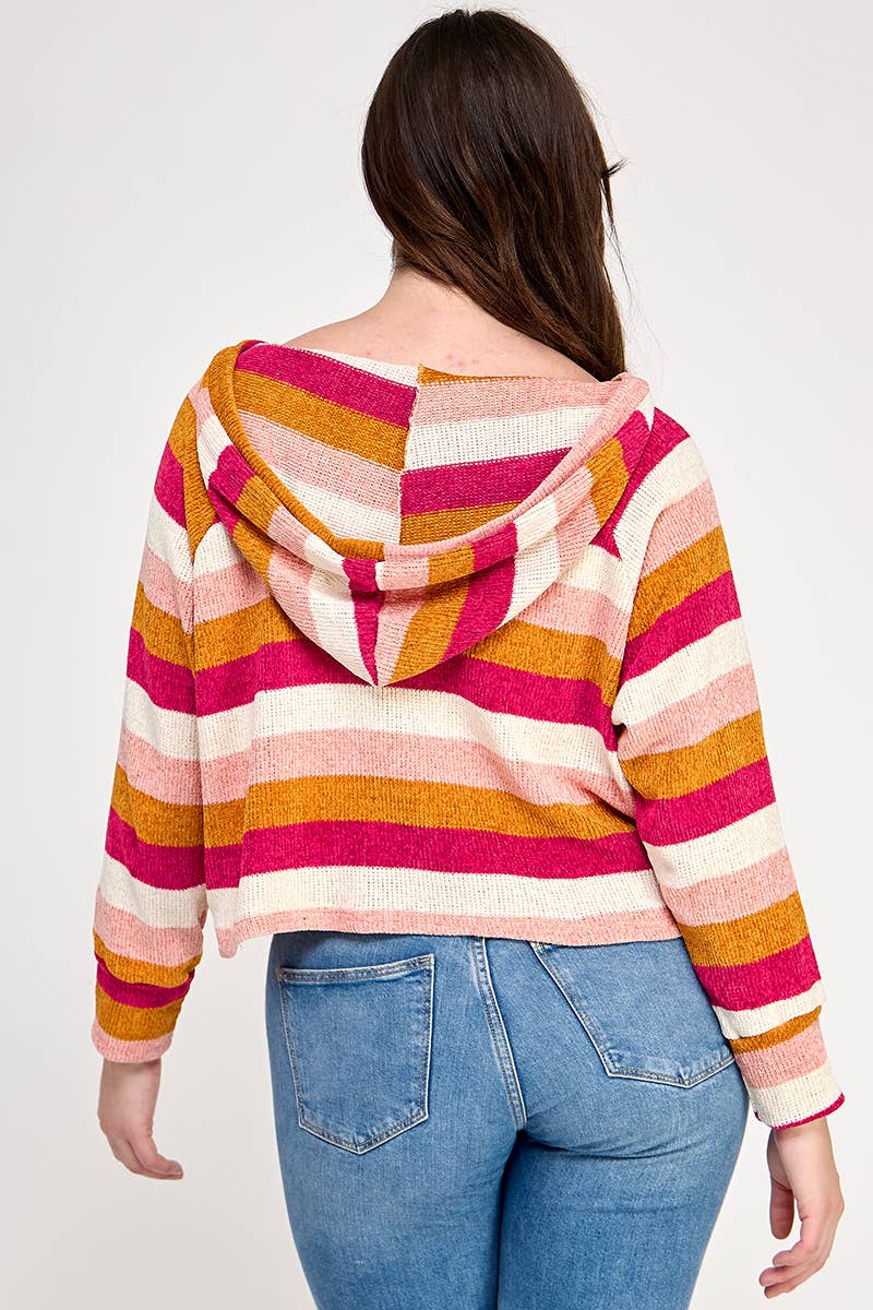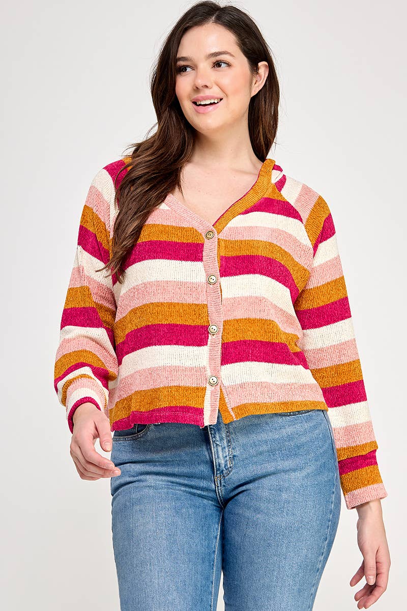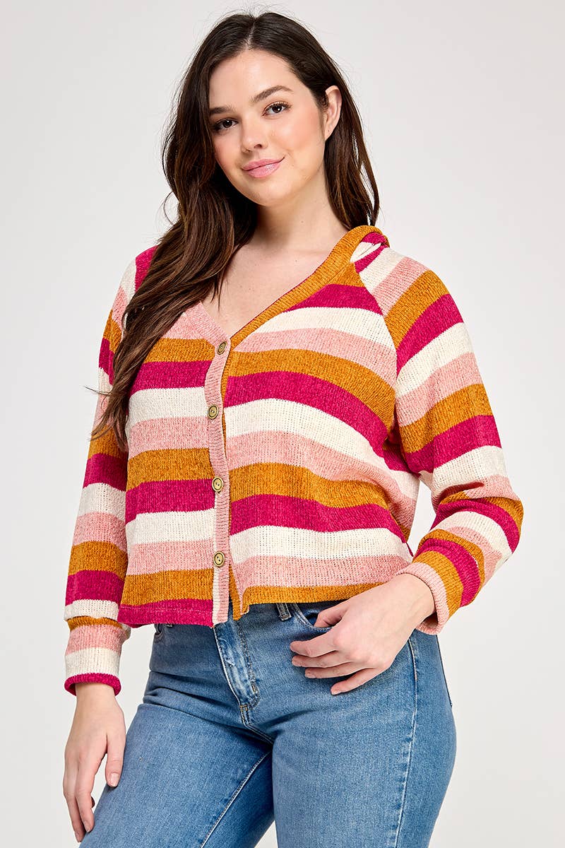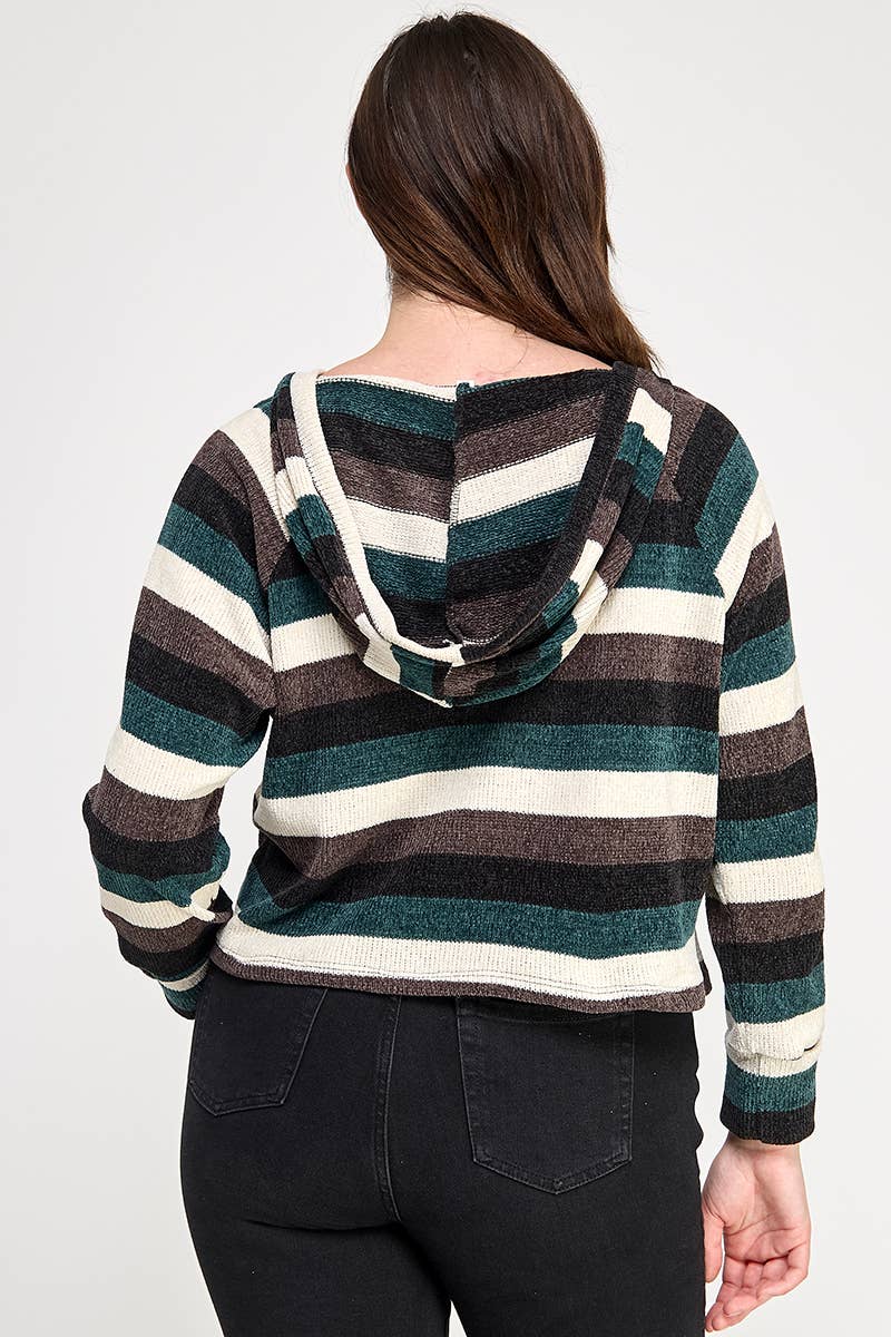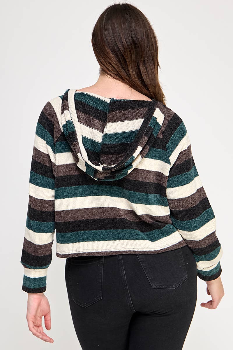 Plus Size Stripe LS Button Down Hoodie Sweater JK18820-T