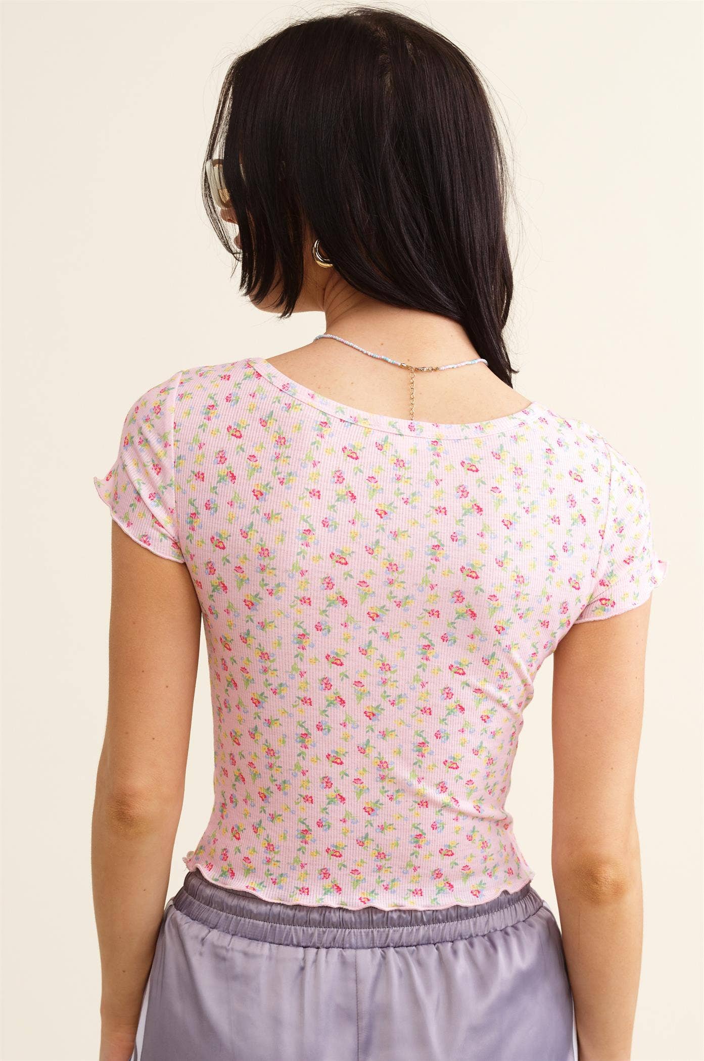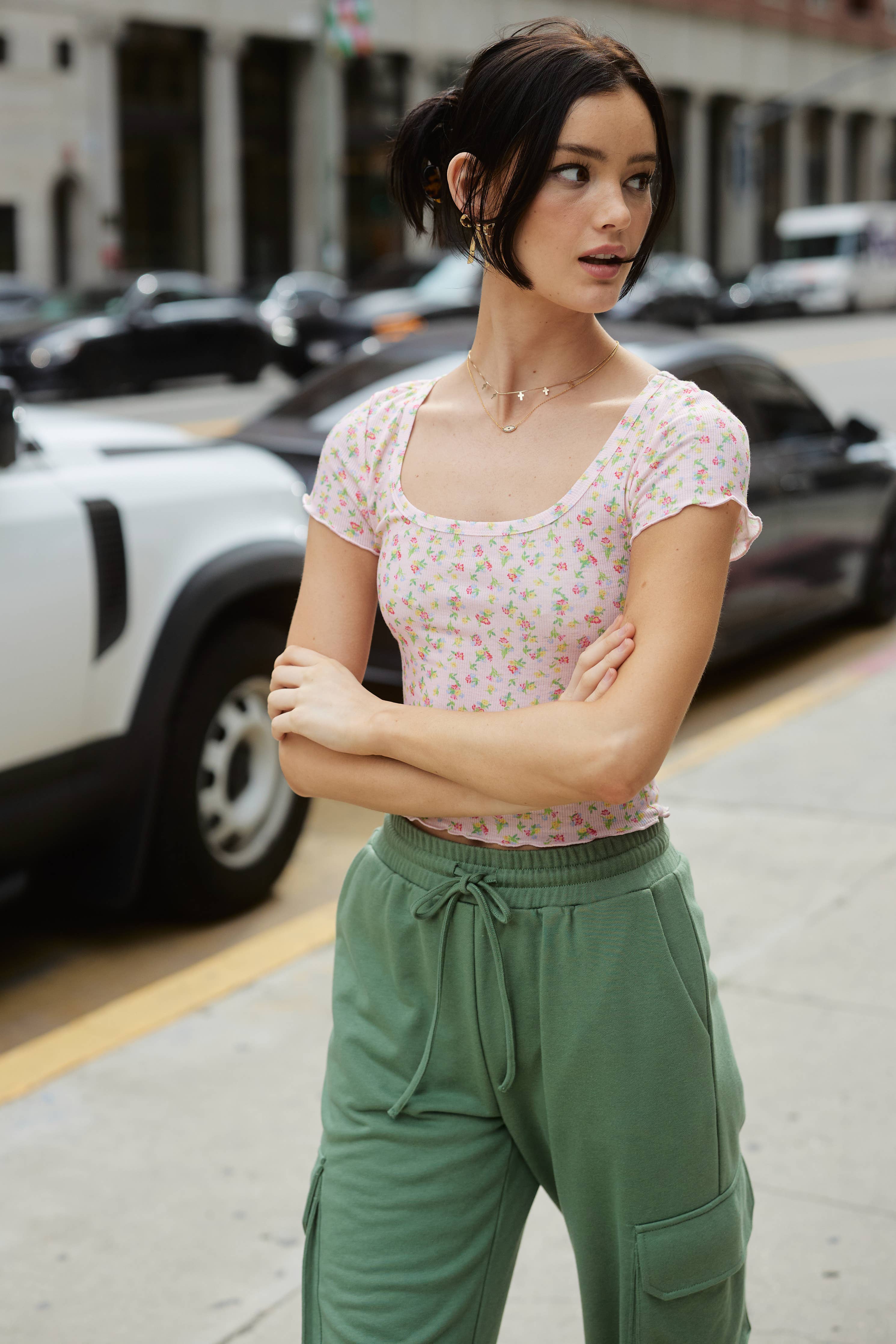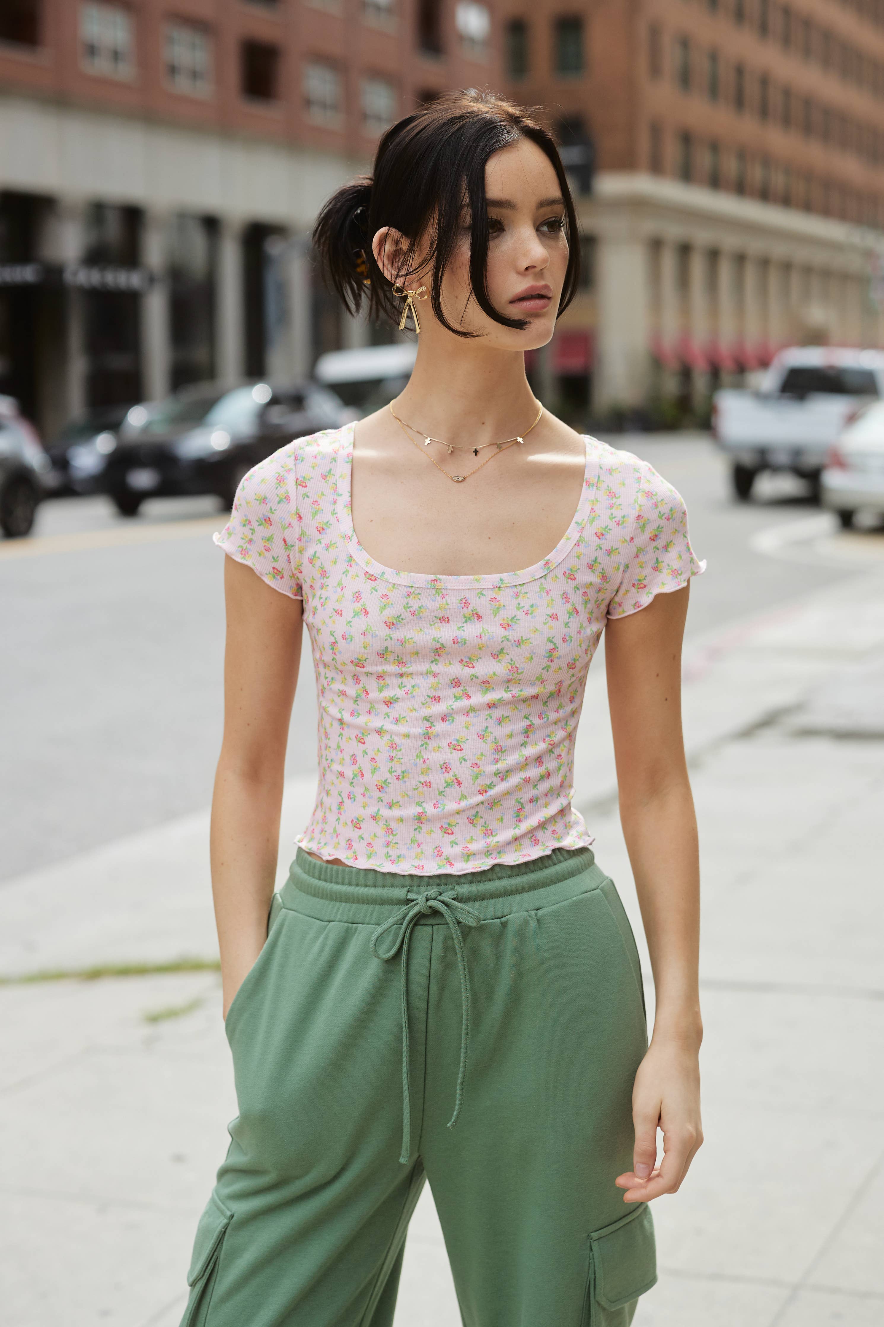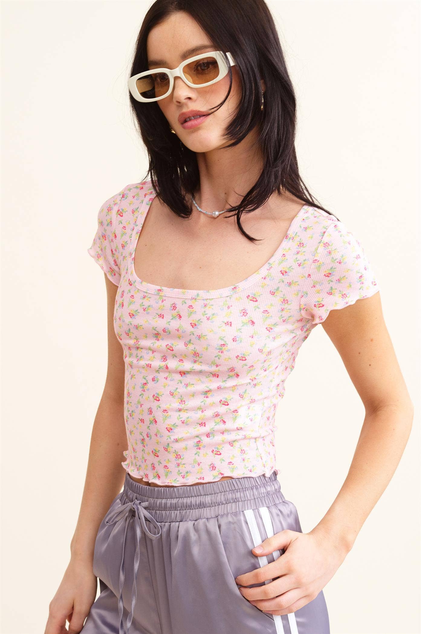 Floral Print Cropped Top with Scooped Square Neckline