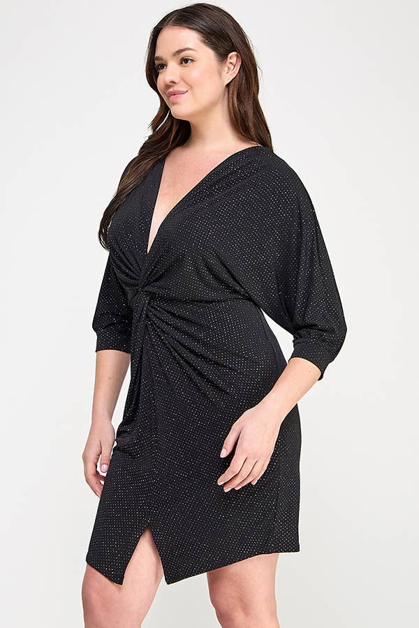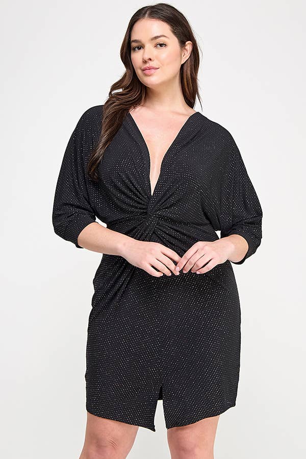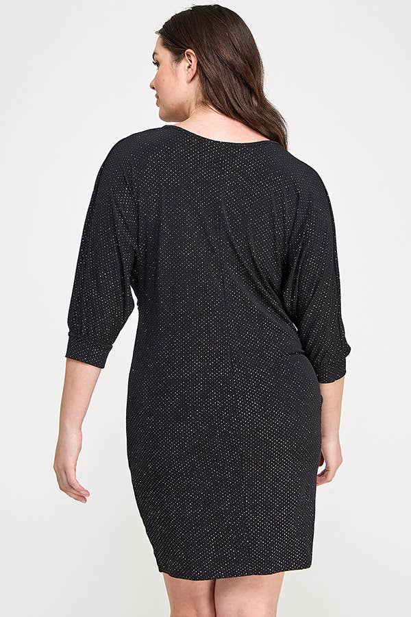 Plus Size Glitter Dot Draped Midi Dress JK18803-D