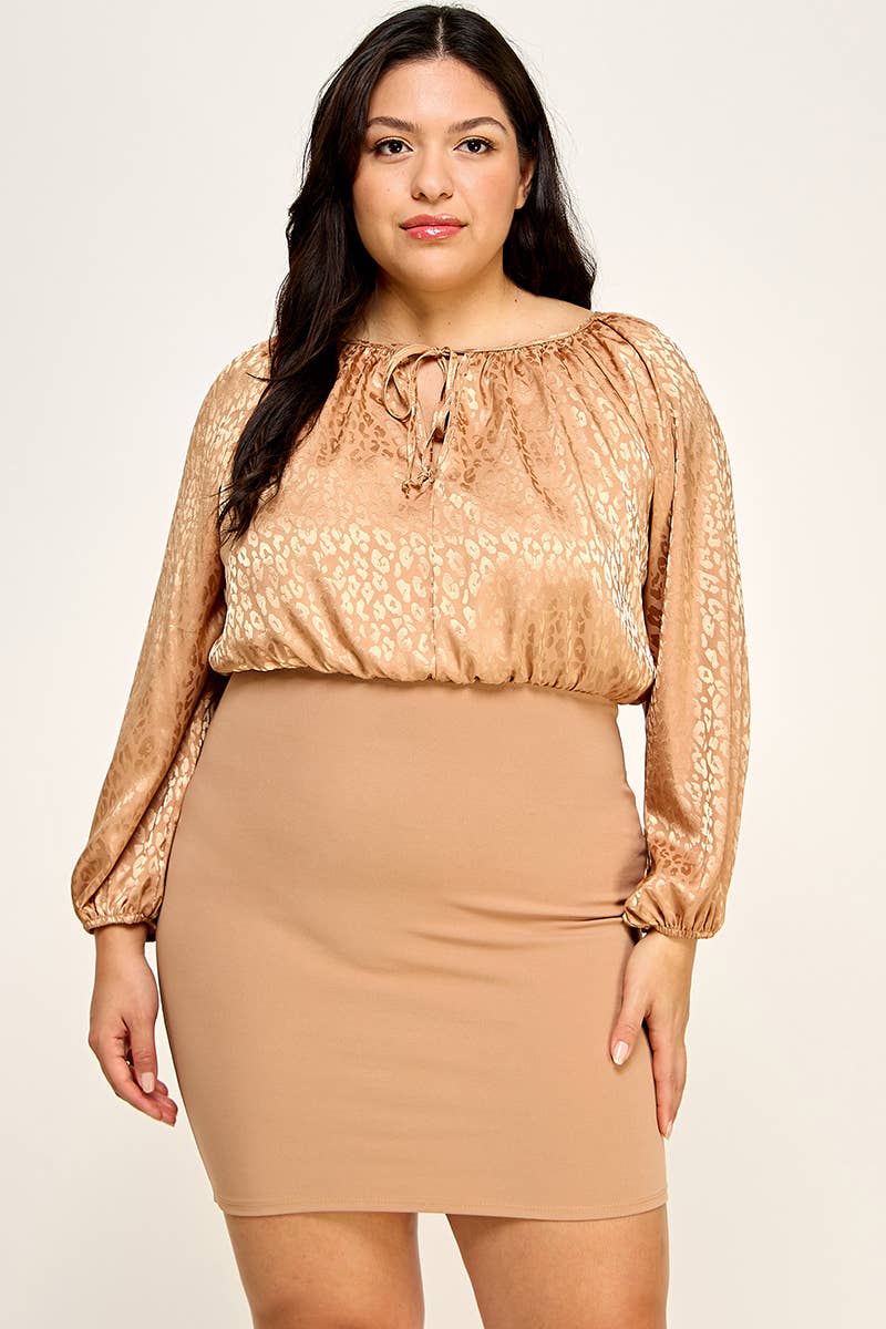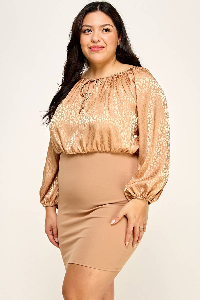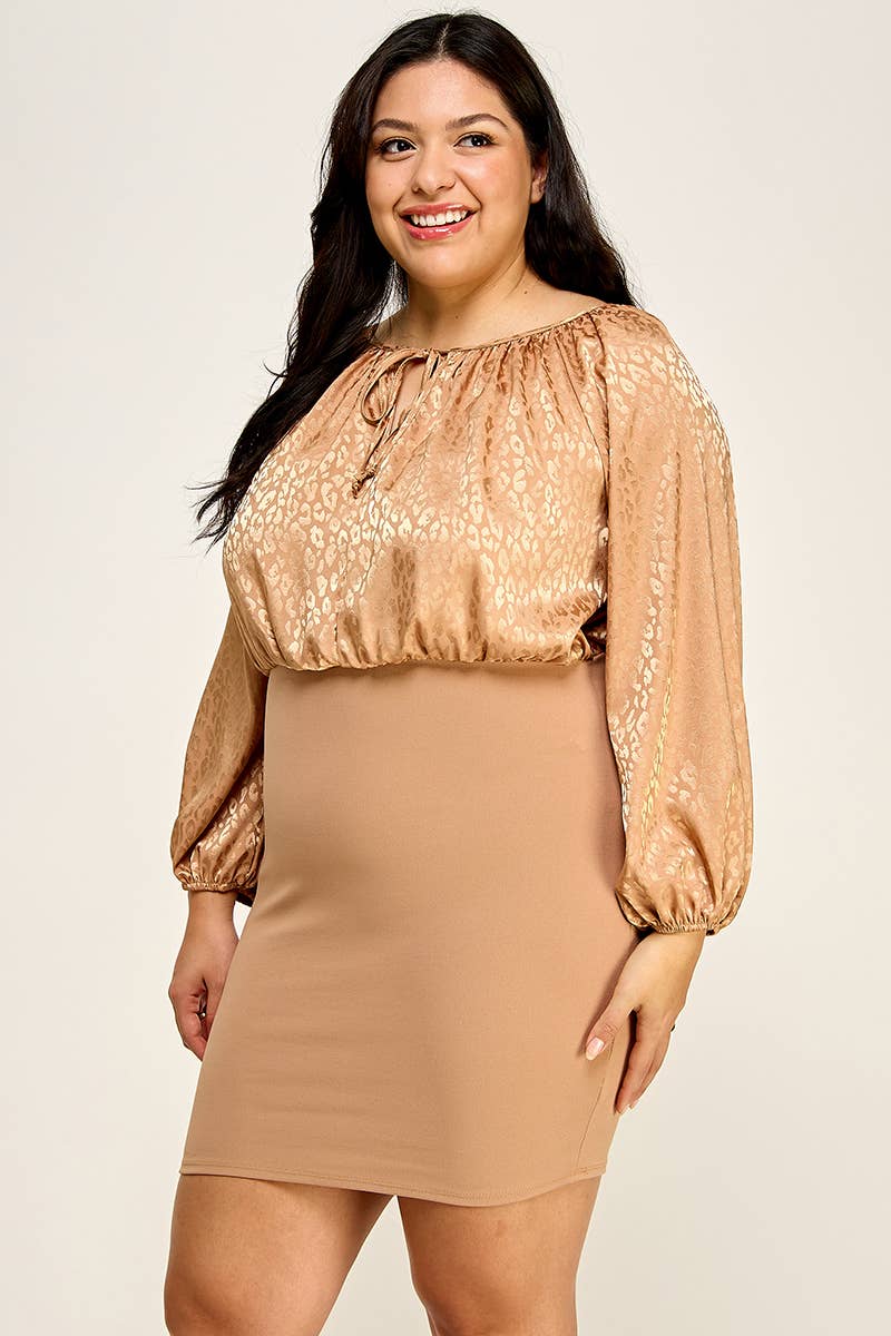 Plus Size Satin Animal Print Bodycon Dress NK18323-D