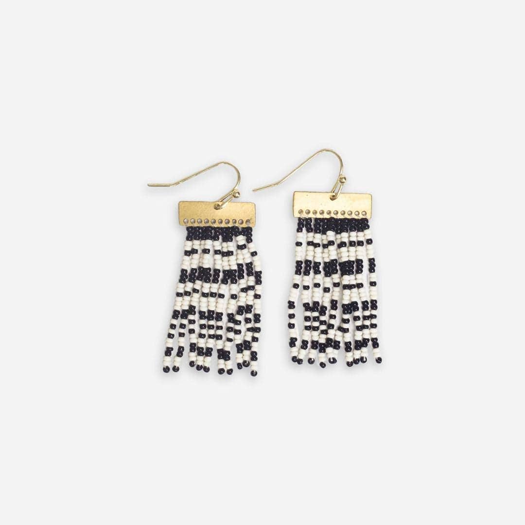 Scout Rectangle Hanger Mixed Horizontal Stripes Beaded Fringe Earrings Black and White Wholesale