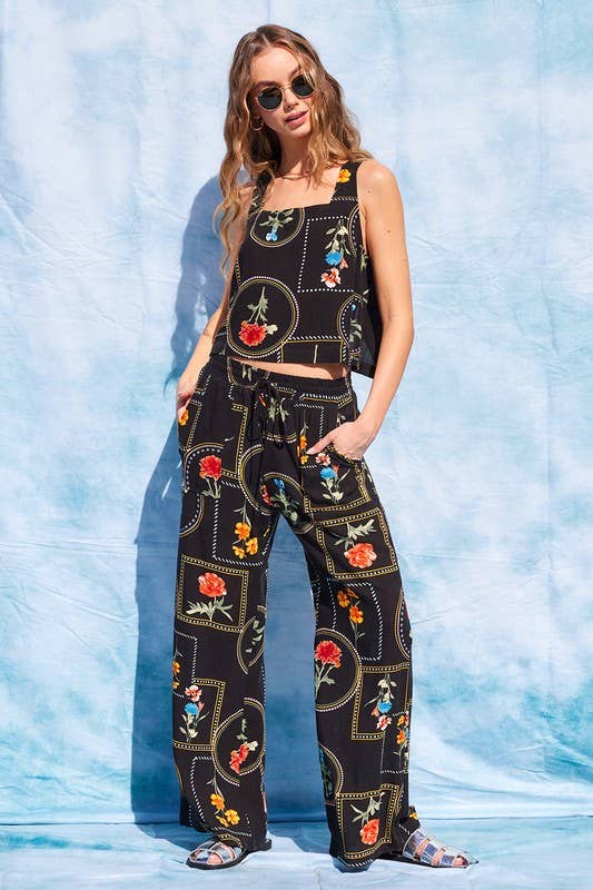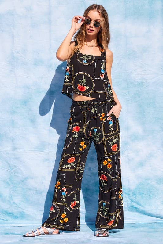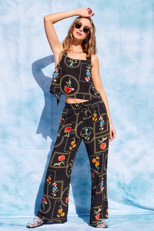 Printed Open Back Top And Pants Set