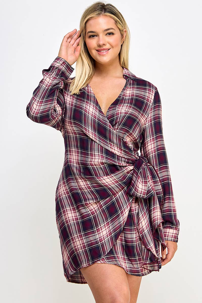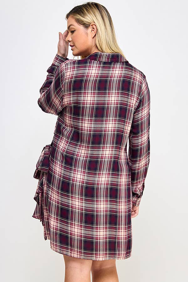 Plus Size Long Sleeve Plaid Side Tie Dress SS2341P-D