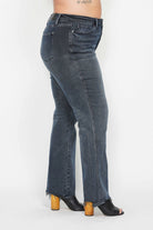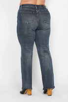 Our High Waisted Button Fly Hem Distressed Straight-PLUS jeans by Judy Blue Jeans are an ideal choice for plus-size women seeking comfort and style. These jeans are designed with a high waist and a button fly for a secure fit. The distressed detailing adds a trendy touch, while the dark wash makes them versatile for both casual occasions. Crafted from 94% cotton, 5% polyester, and 1% spandex, they offer a comfortable stretch. Perfect for the fall/winter season, they can be cared for with a simple hand wash. The jeans have a front rise of 12" and an inseam of 32 1/2". Experience the blend of timeless appeal with a modern twist that Judy Blue Jeans offers.