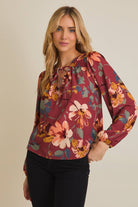 V-NECK FRONT TIE LONG SLEEVE FLORAL TOP