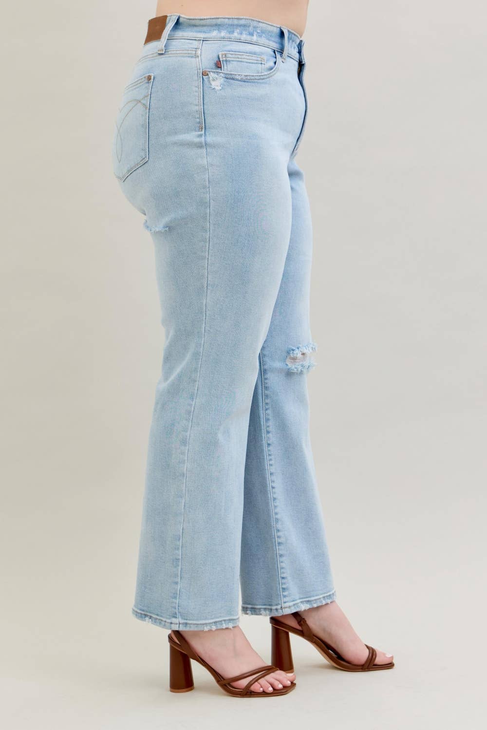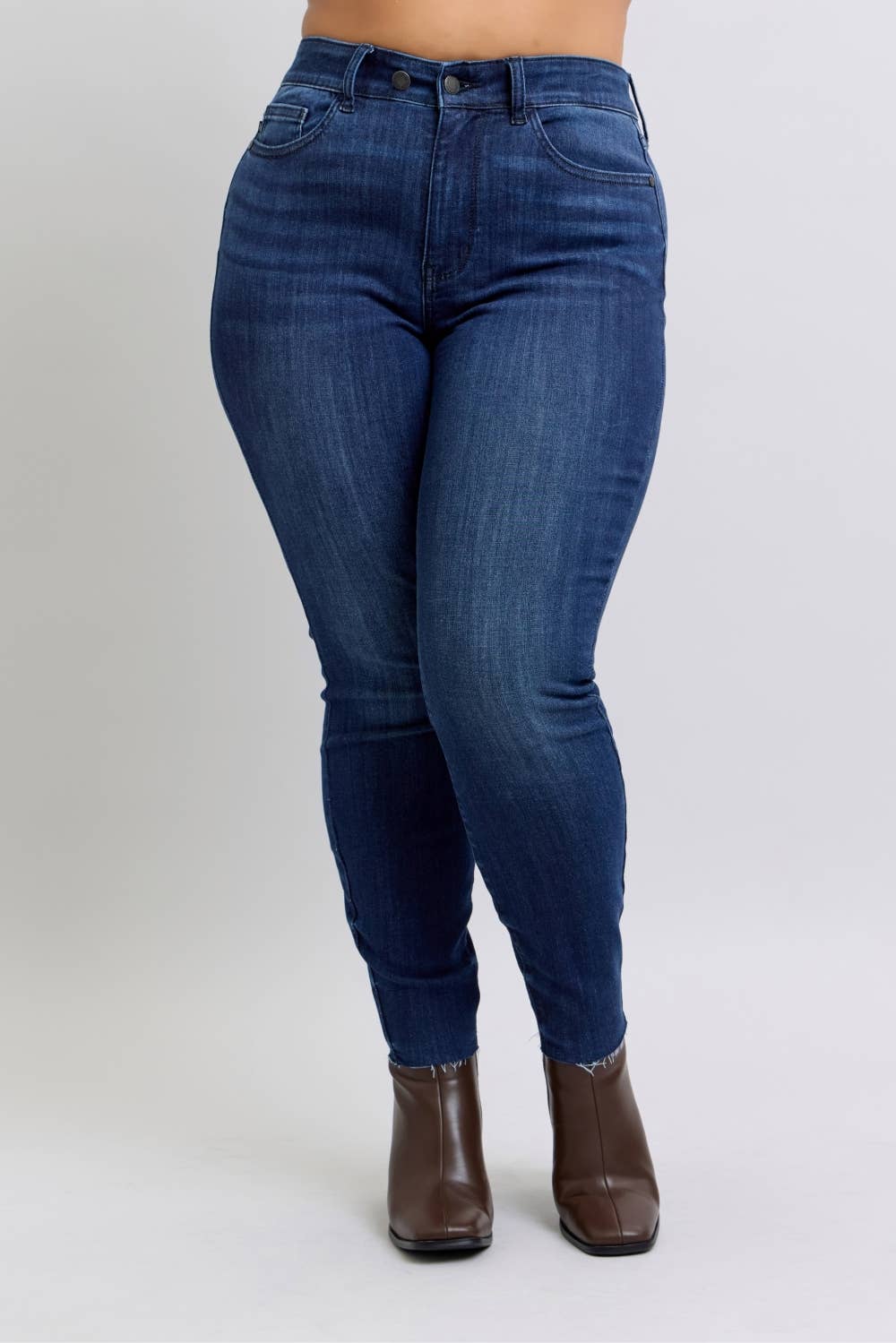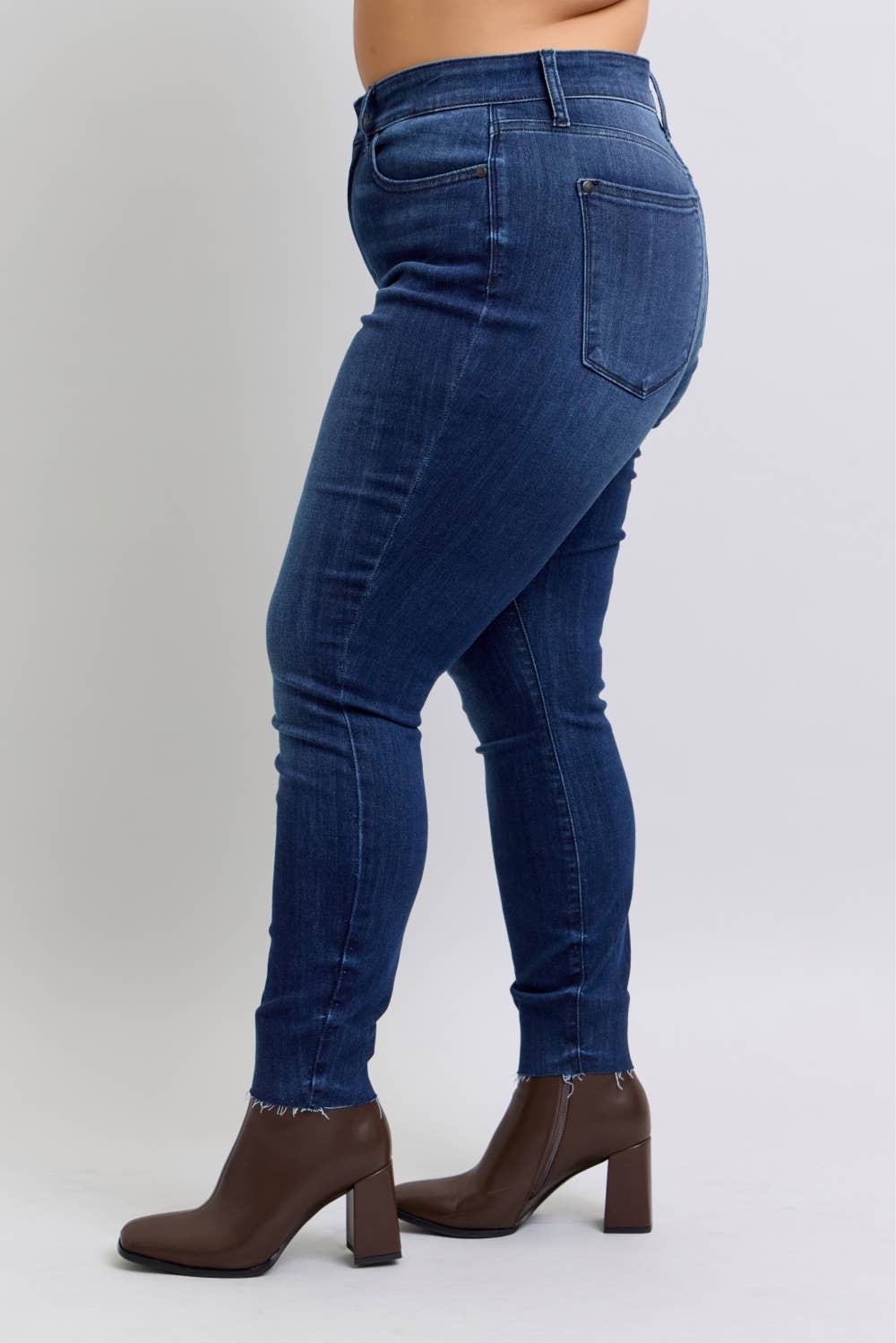High Waisted Button Fly Hem Distressed Straight- PLUS