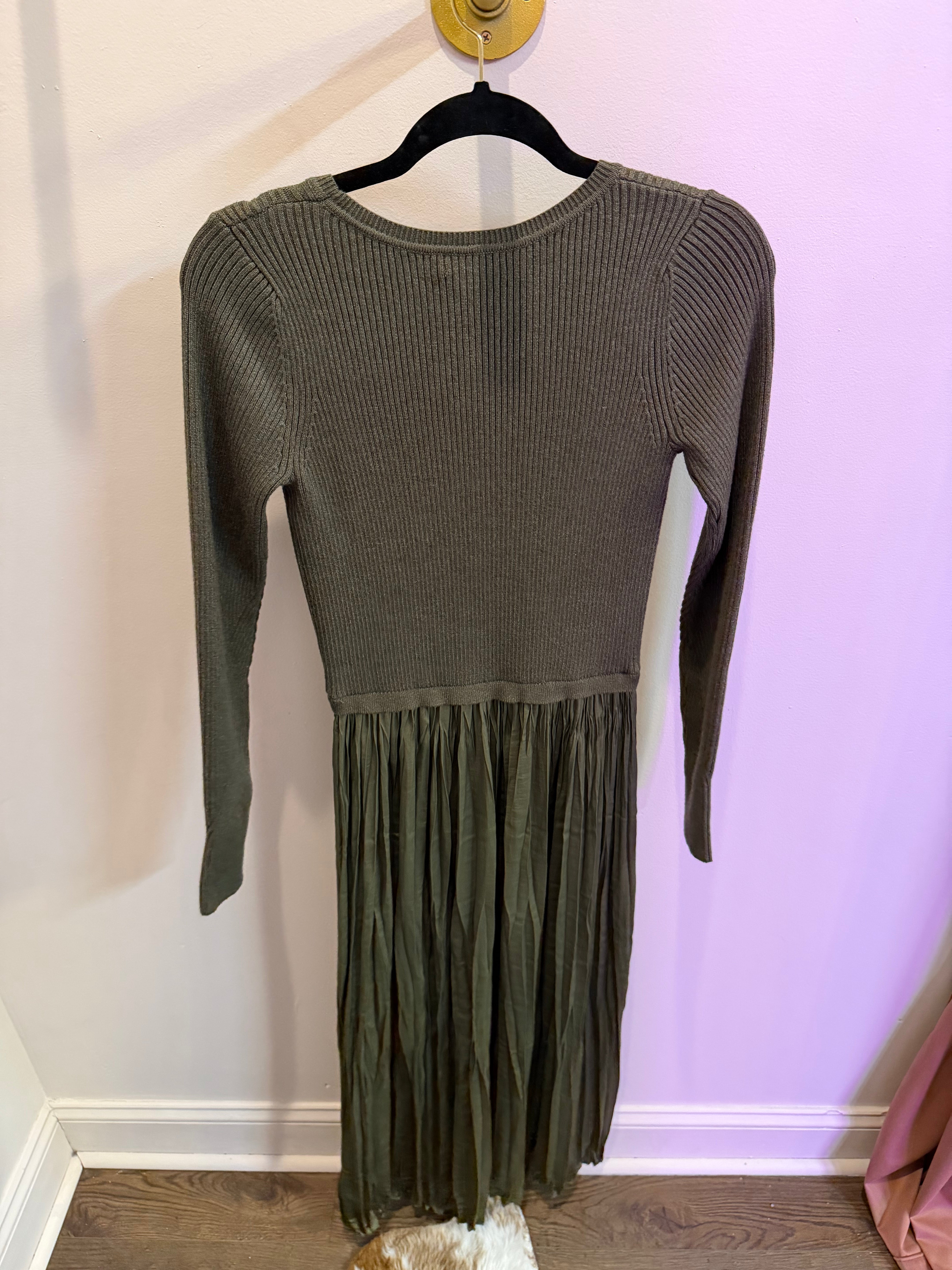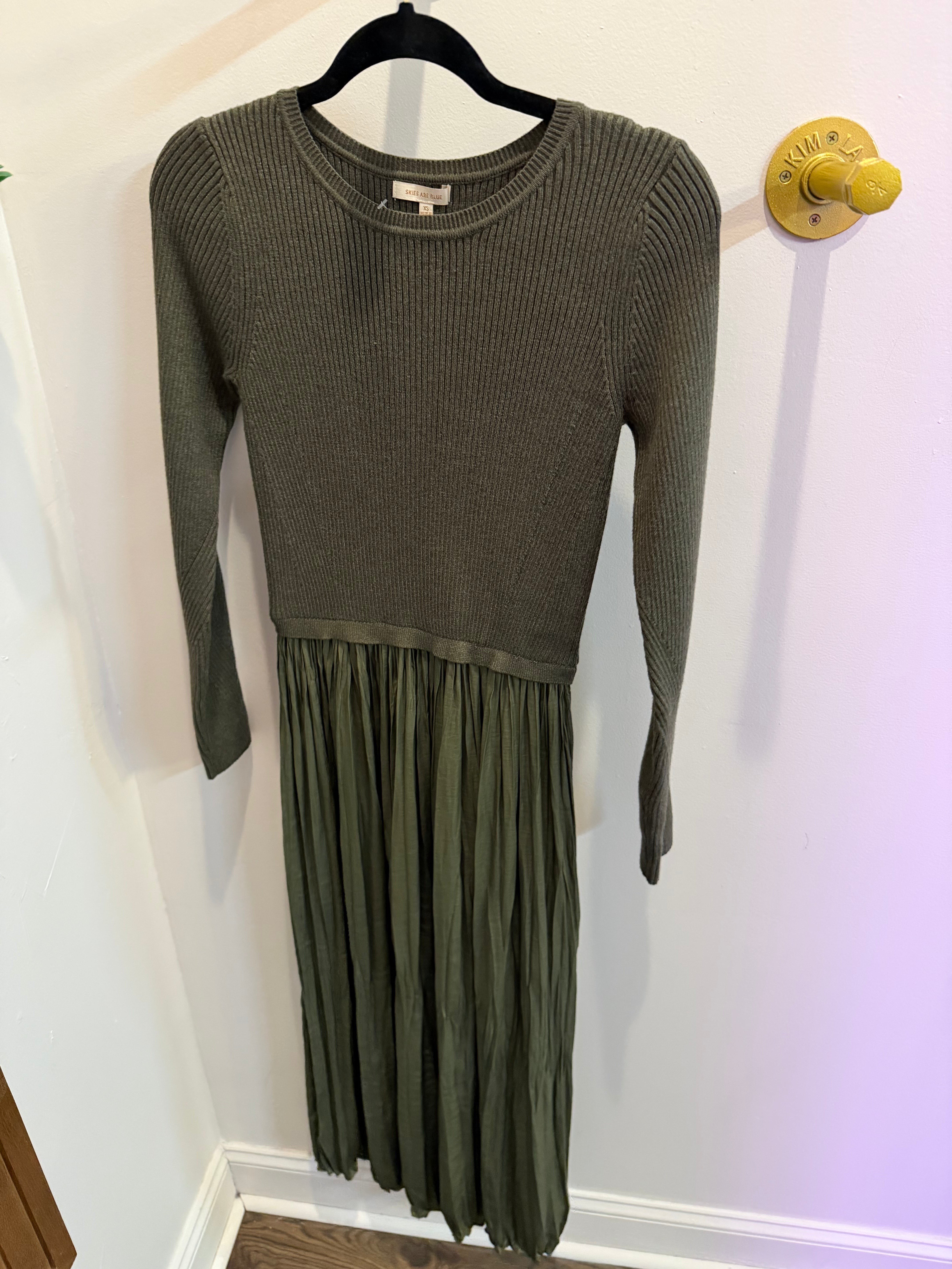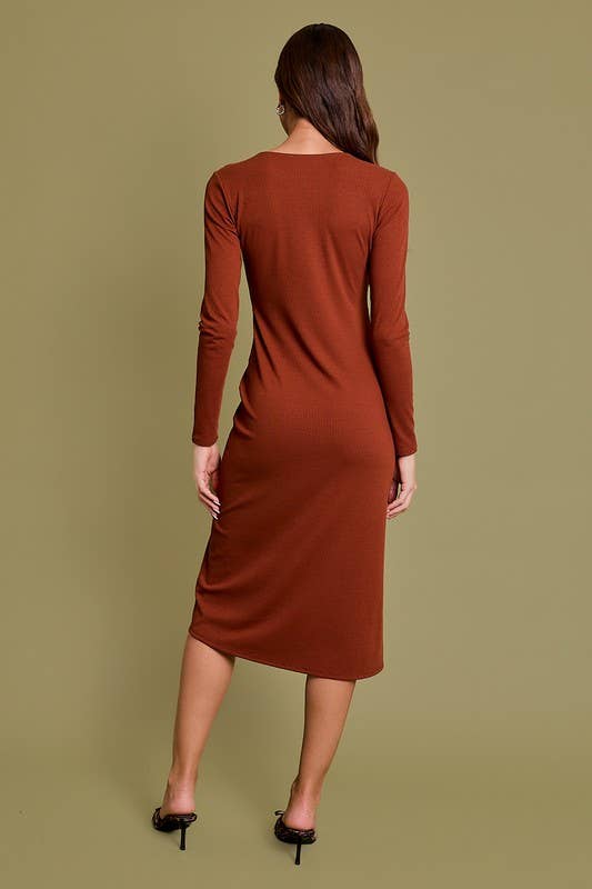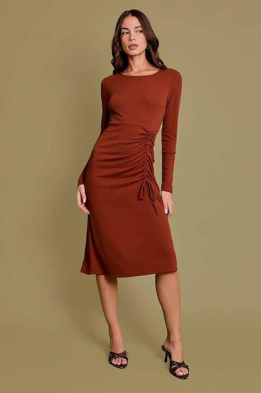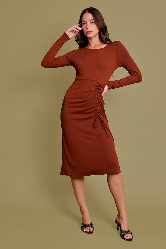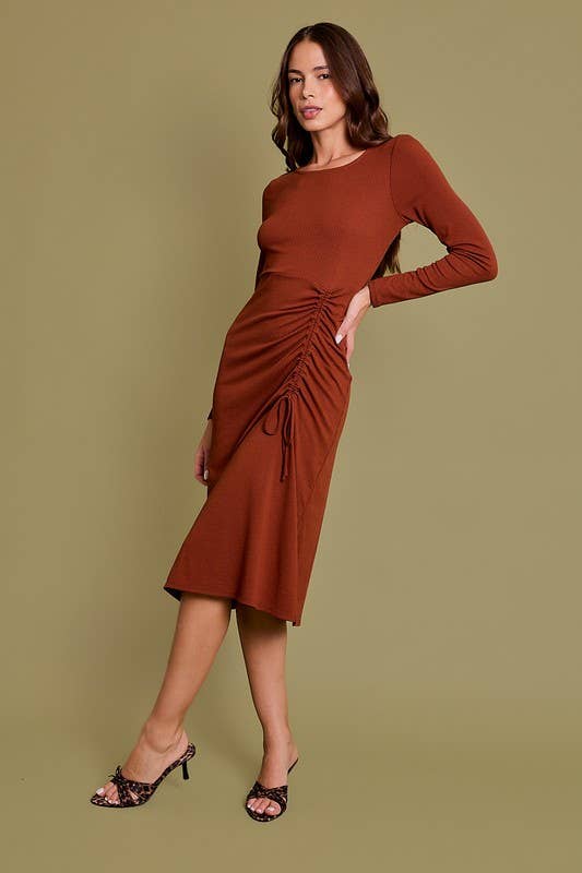 LONG SLEEVE ROUND NECK TUNNEL DRAWSTRING MIDI DRESS