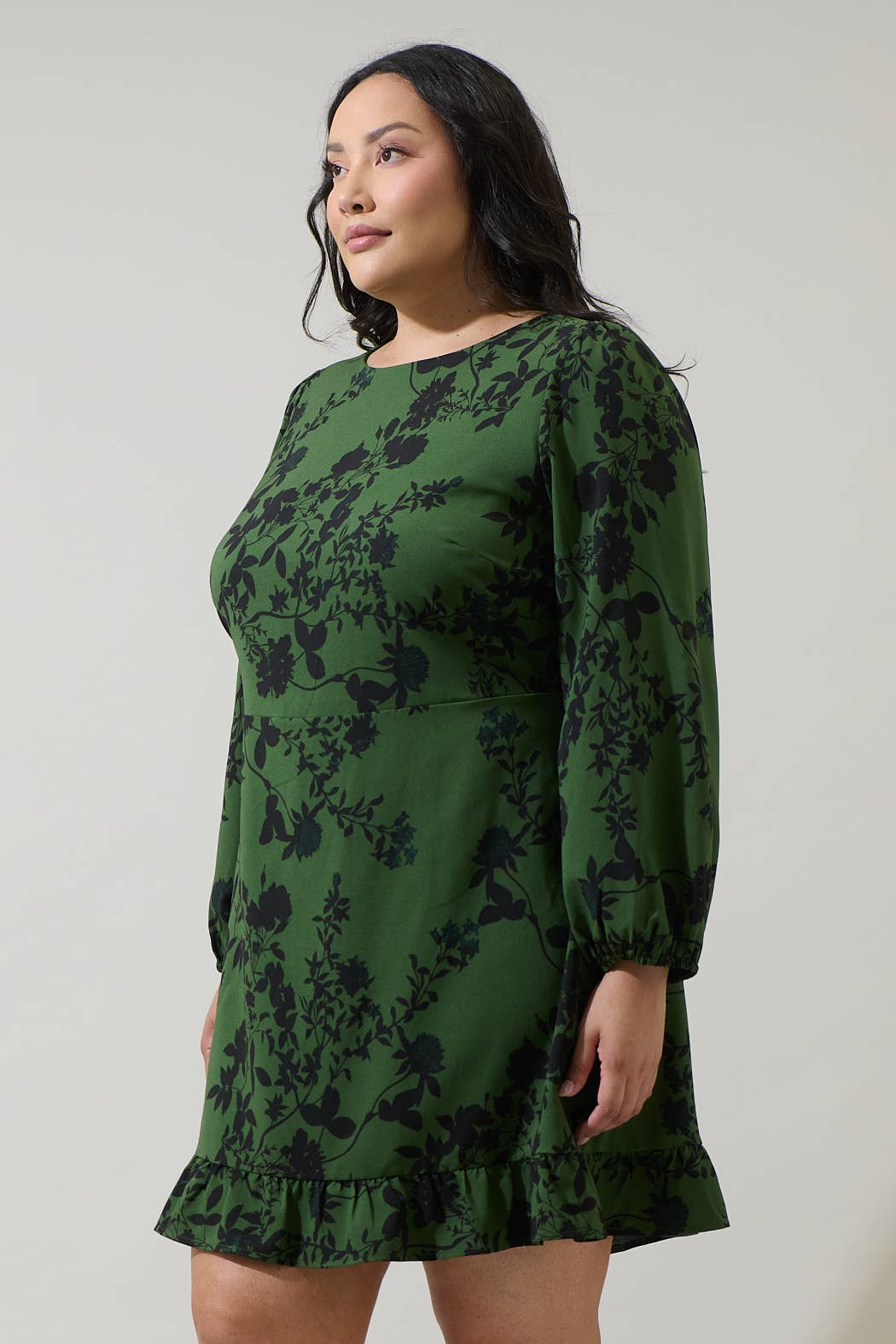Tindrie Floral Ruffle Flounce Mini Dress Curve