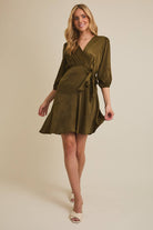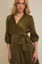 SURPLICE 3/4 SLEEVE WAIST TIE DRESS