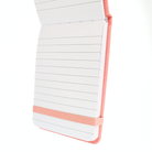 Half the pages are lined and half are unlined. It has an elastic band attached to keep the notebook closed.