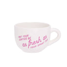 Dolomite white spray tan coffee mug. Weight: 0.73lb. Length: 6.25". Width: 5". Height: 3.75".