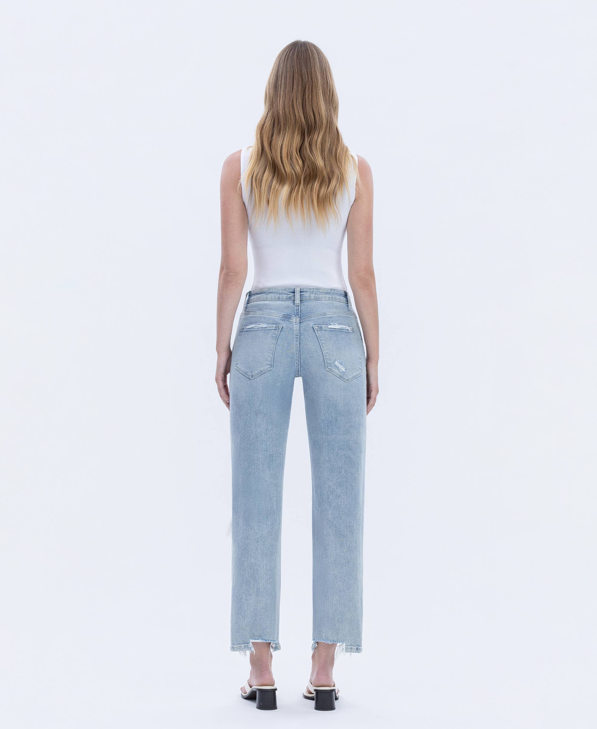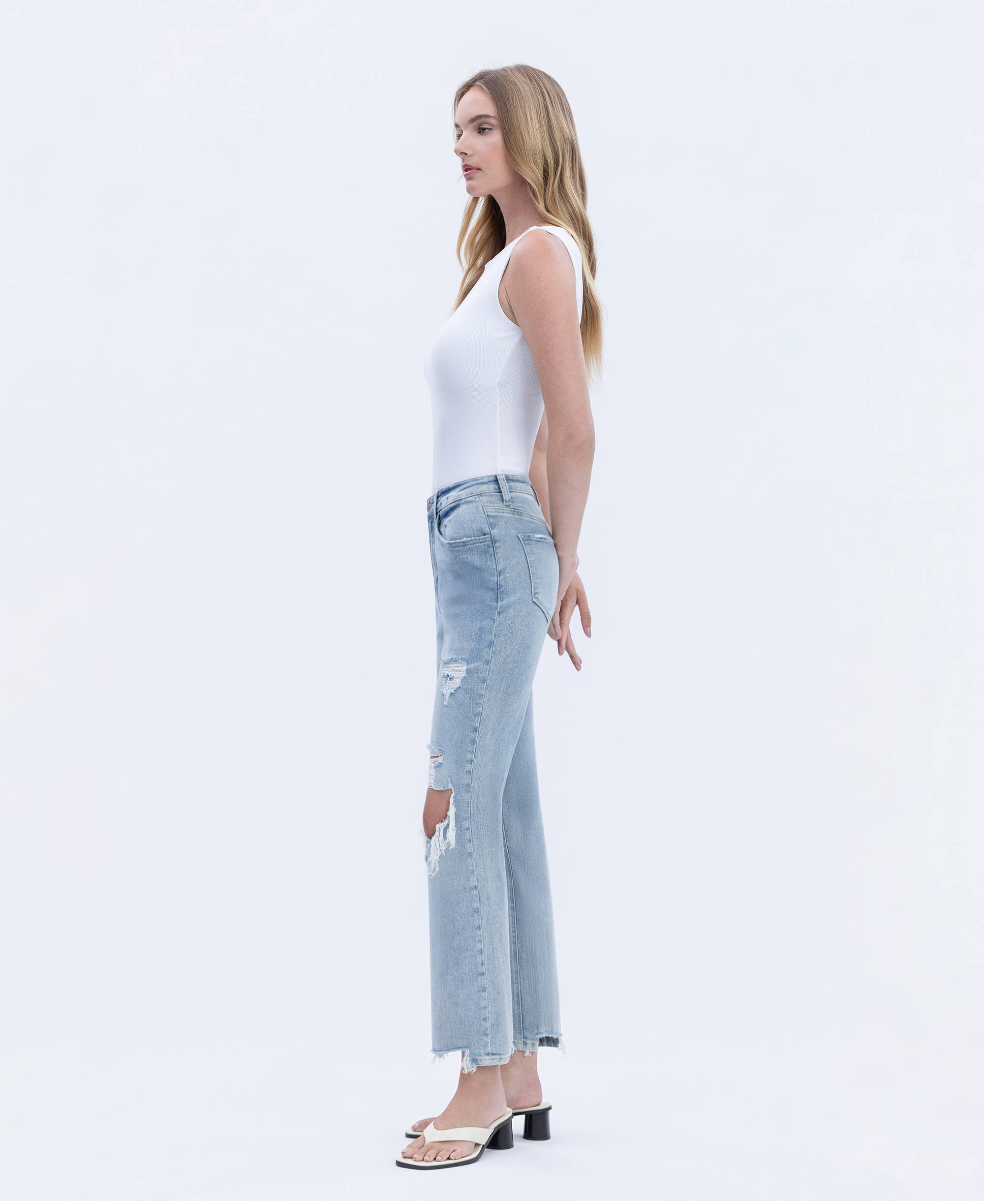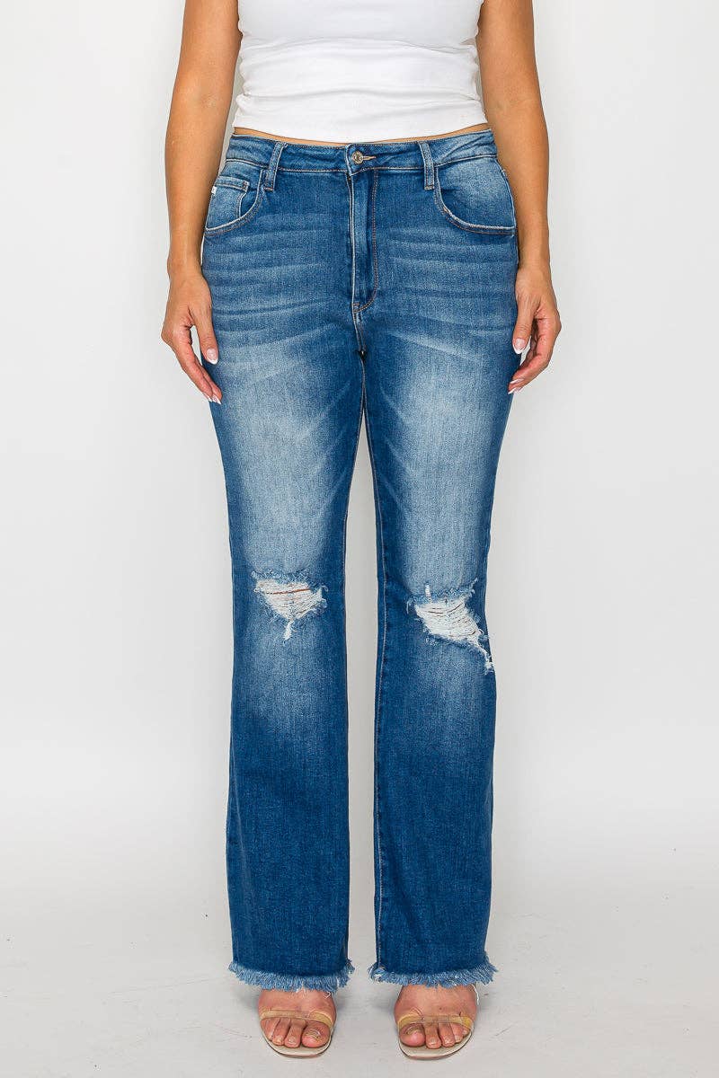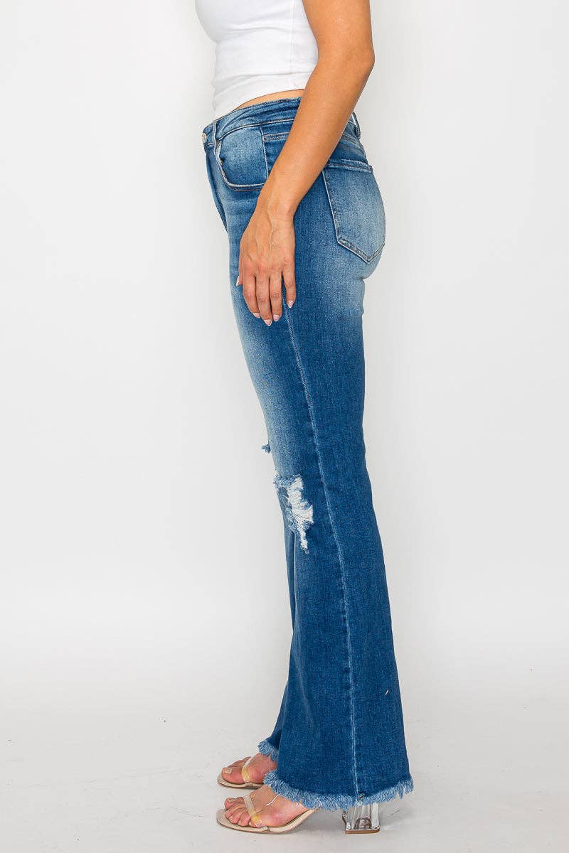 DISTRESSED HIGH RISE COMFORT VINTAGE FLARE JEANS