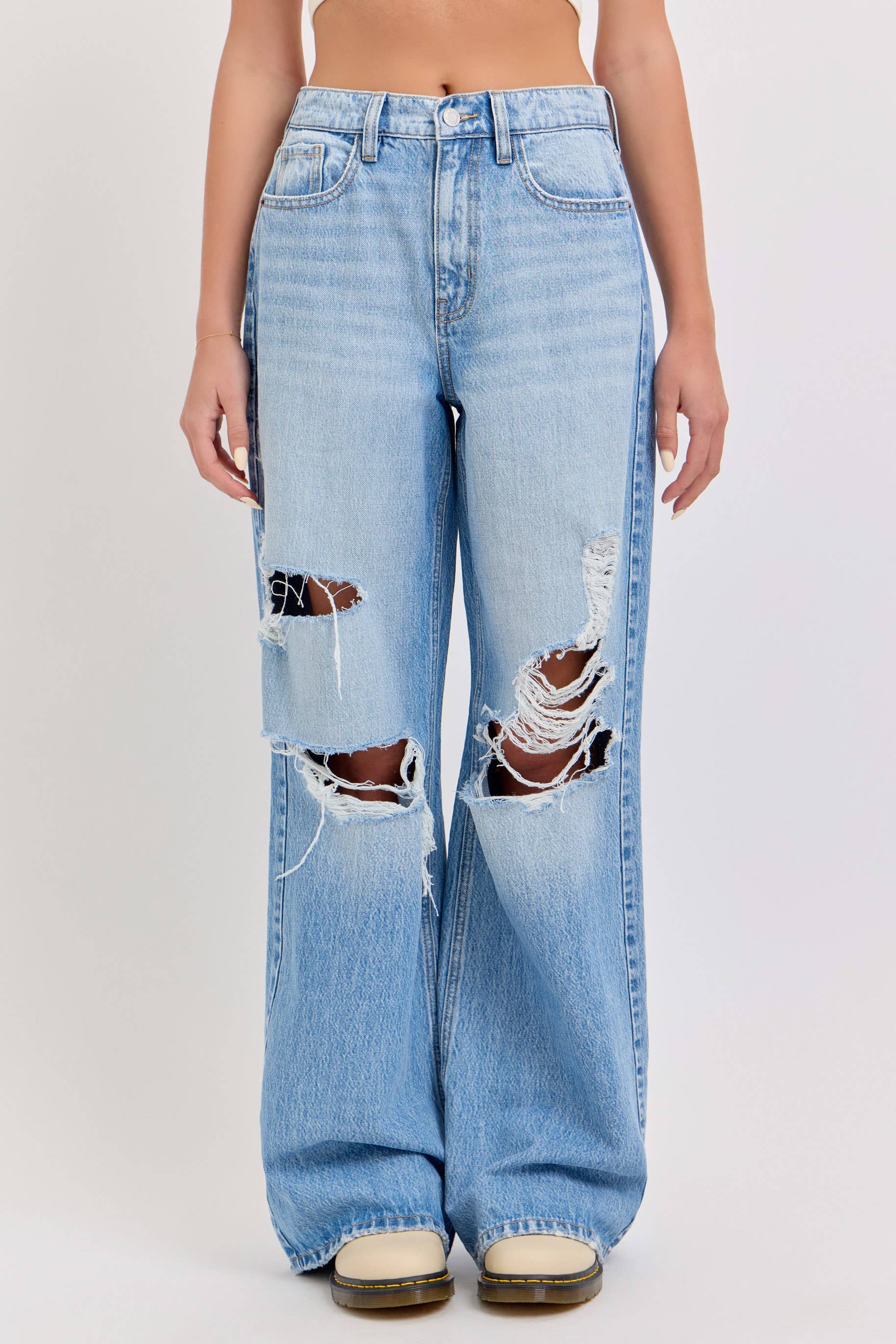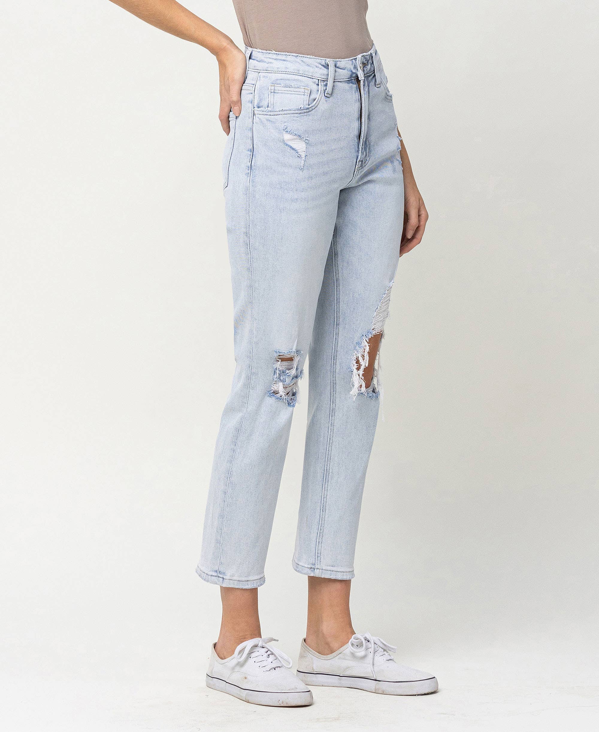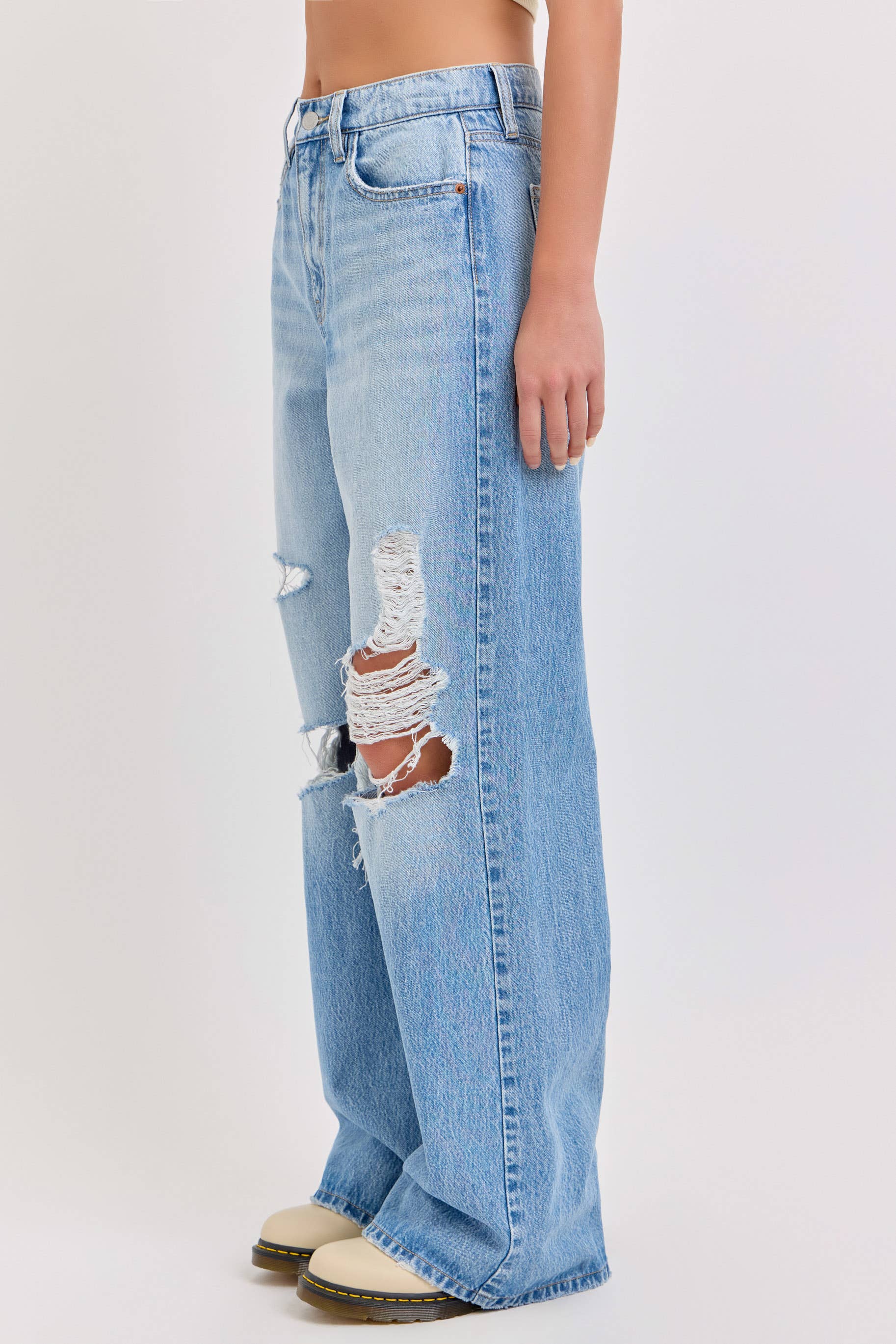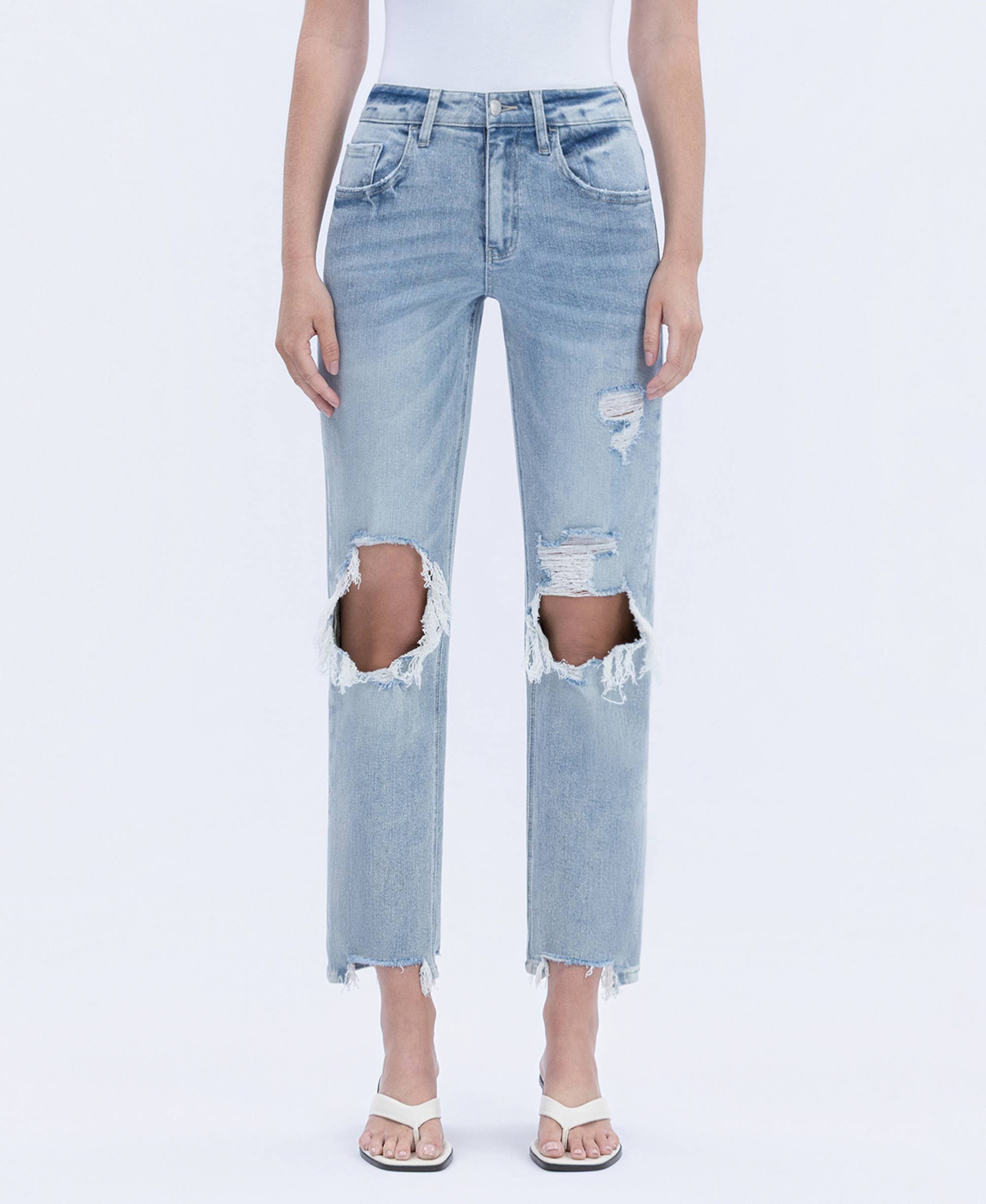 90'S SUPER HIGH RISE DISTRESSED DAD JEANS