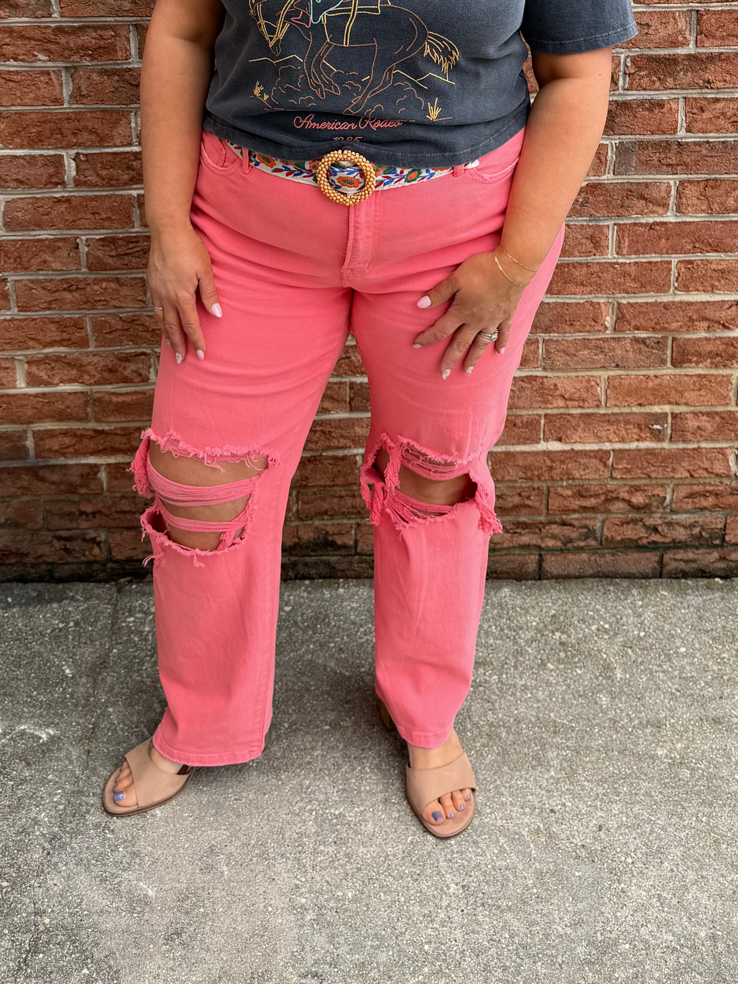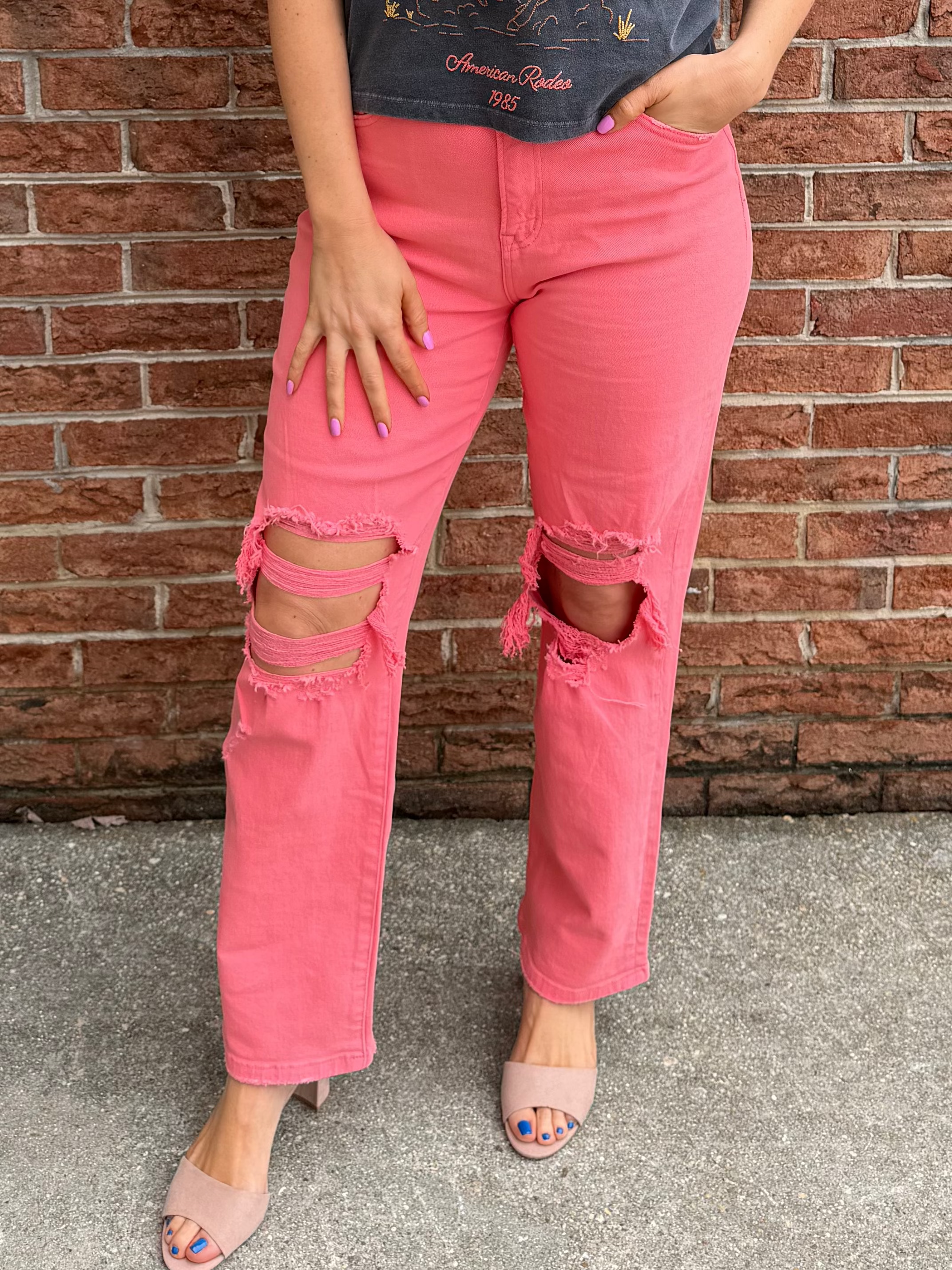 DISTRESSED HIGH RISE RIGID VINTAGE STRAIGHT
