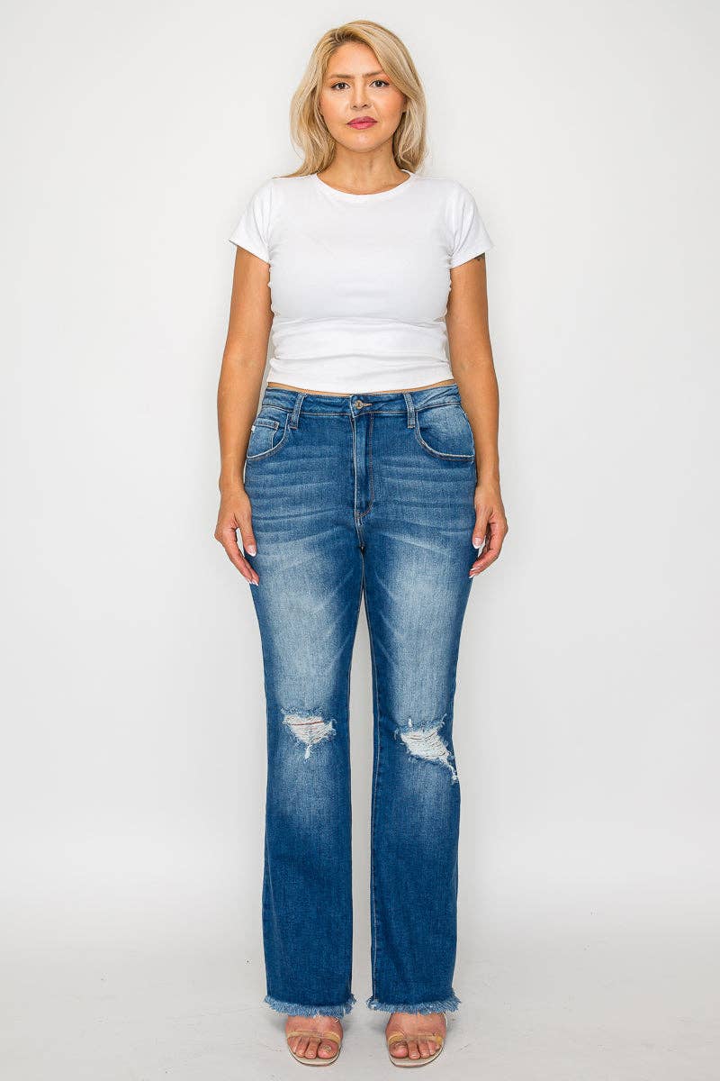 PLUS SIZE HIGH RISE RAW STEP HEM KICK FLARE JEANS