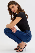 Dark High Rise Ankle Skinny