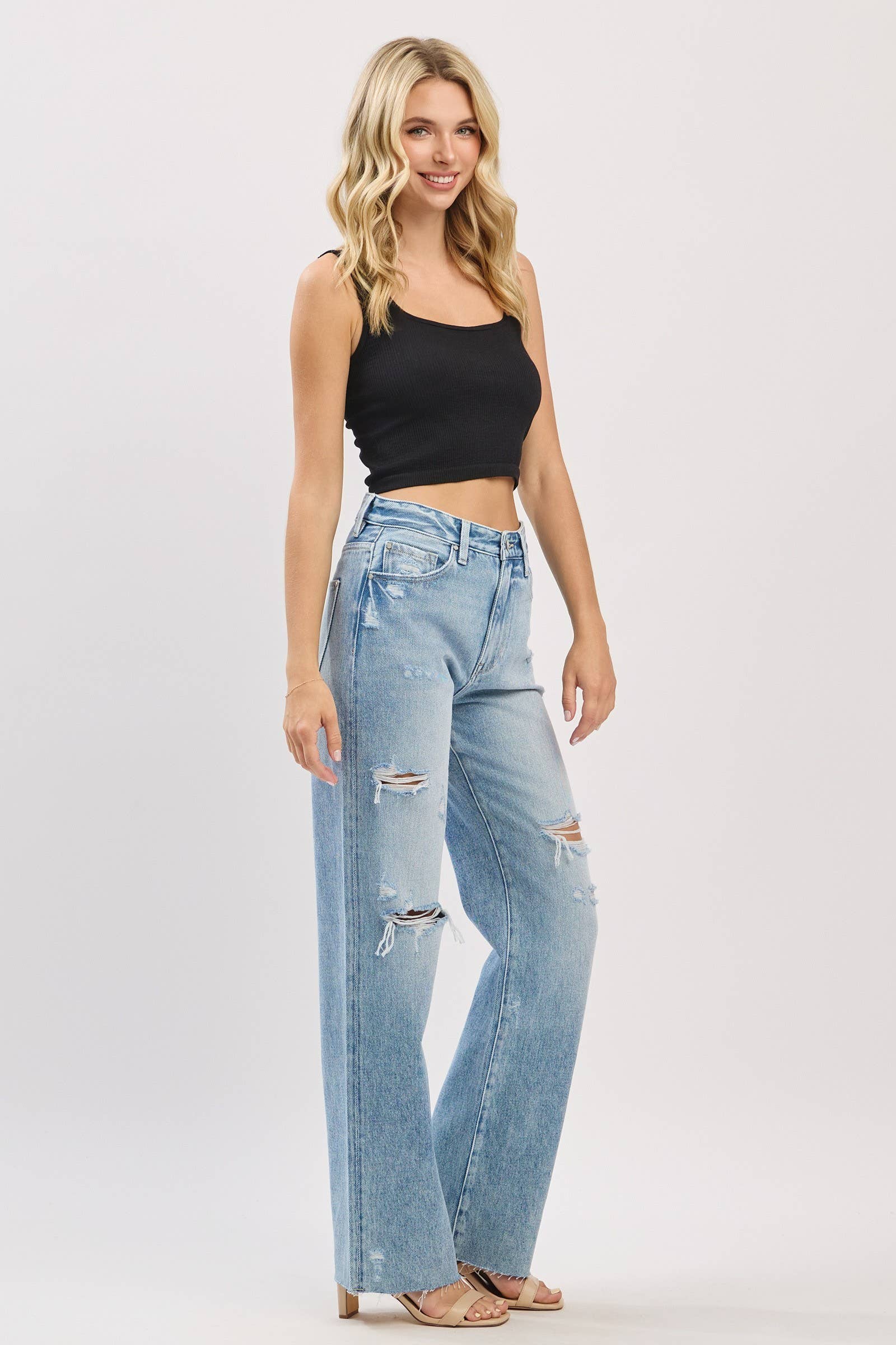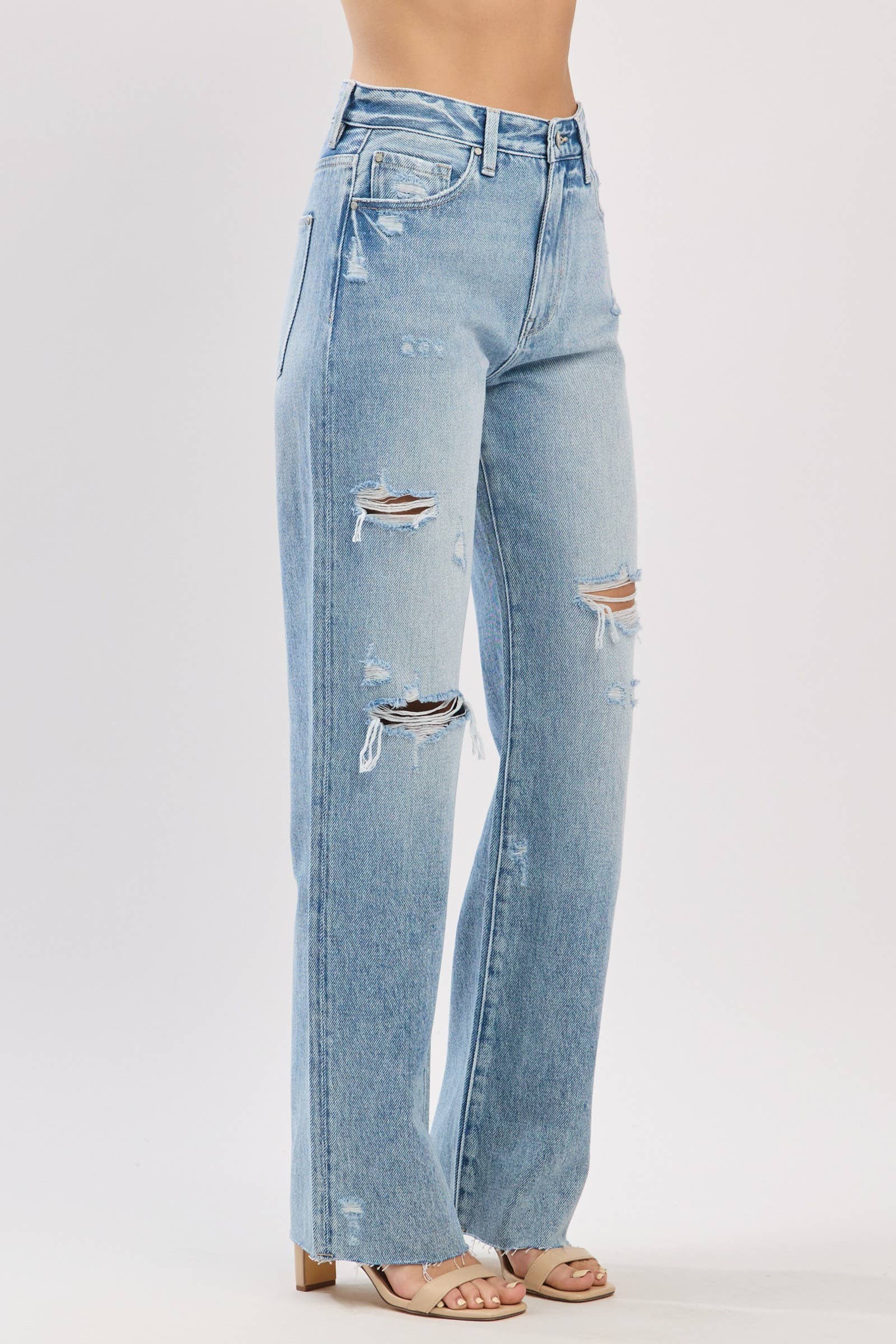 DISTRESSED HIGH RISE RIGID VINTAGE STRAIGHT