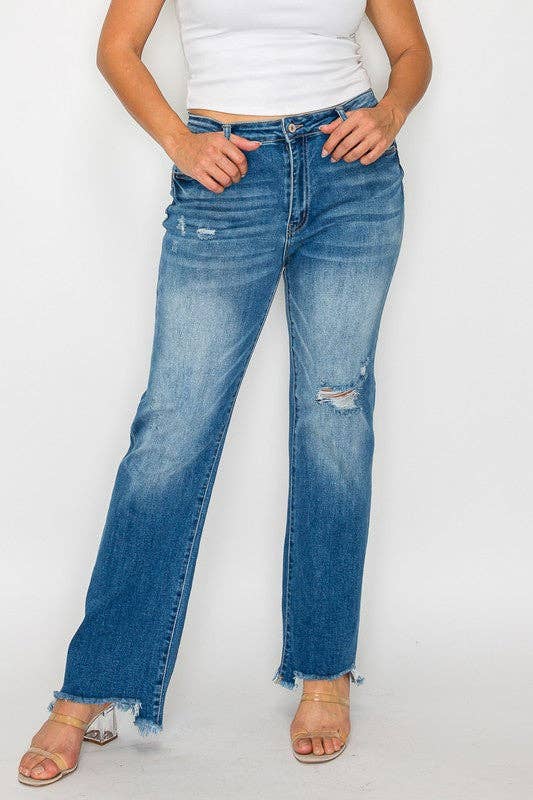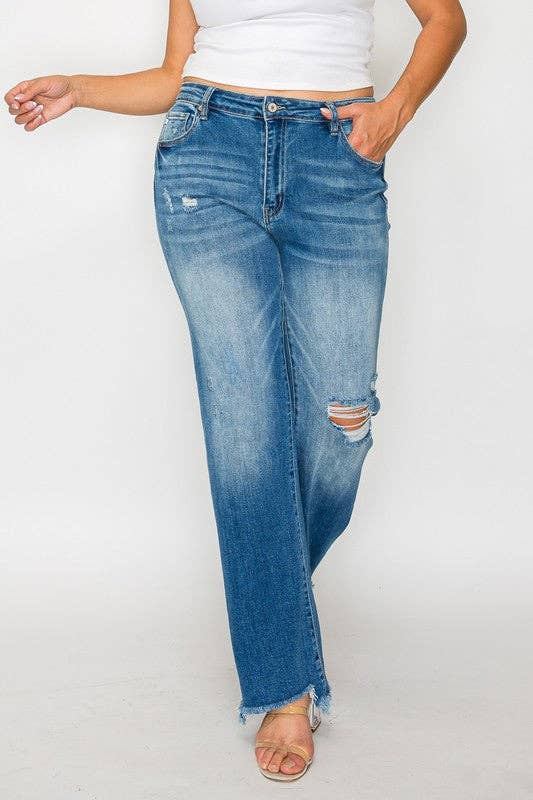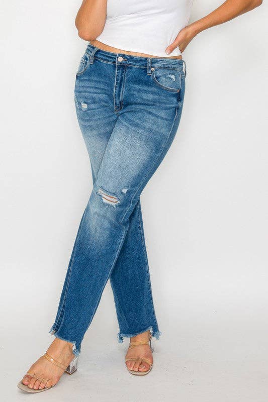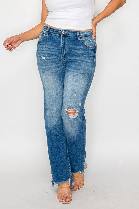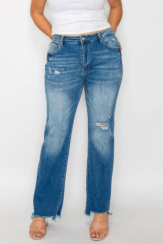 Distressed Mid Rise Straight - PLUS