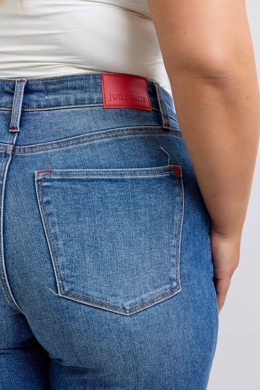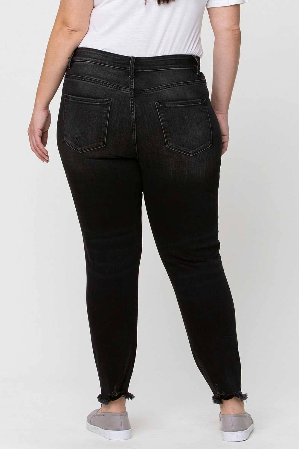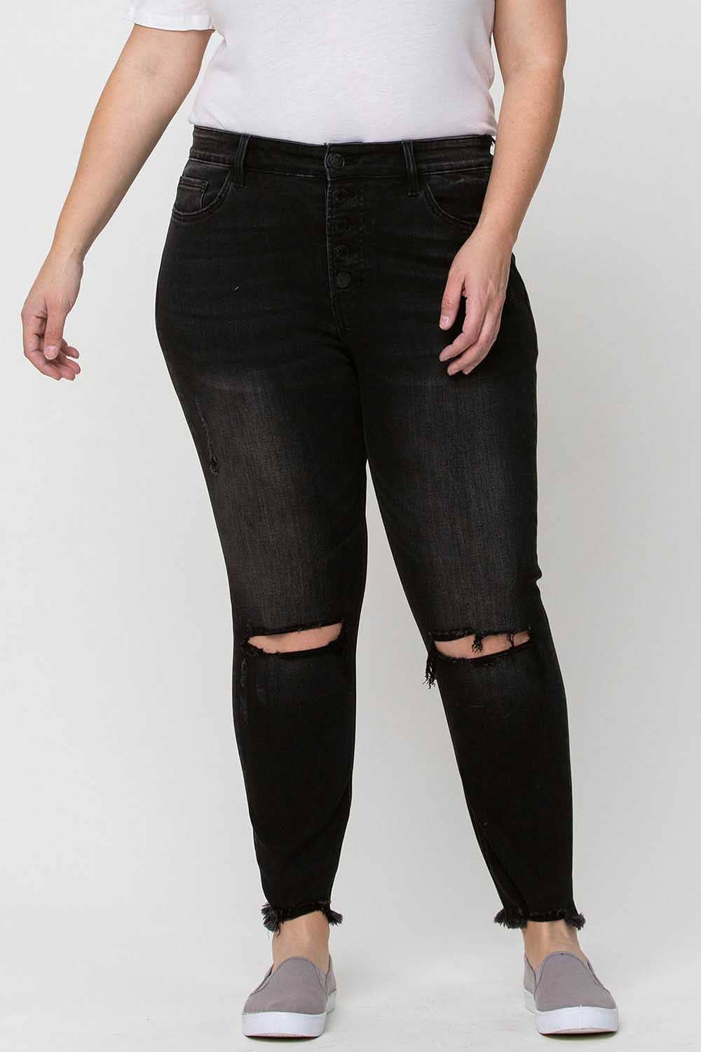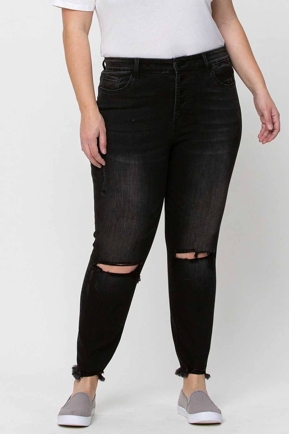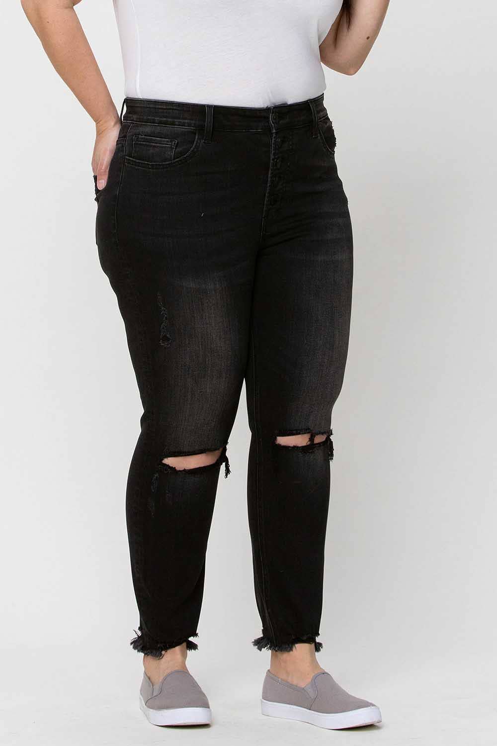High Waisted Button Fly Hem Distressed Straight- PLUS