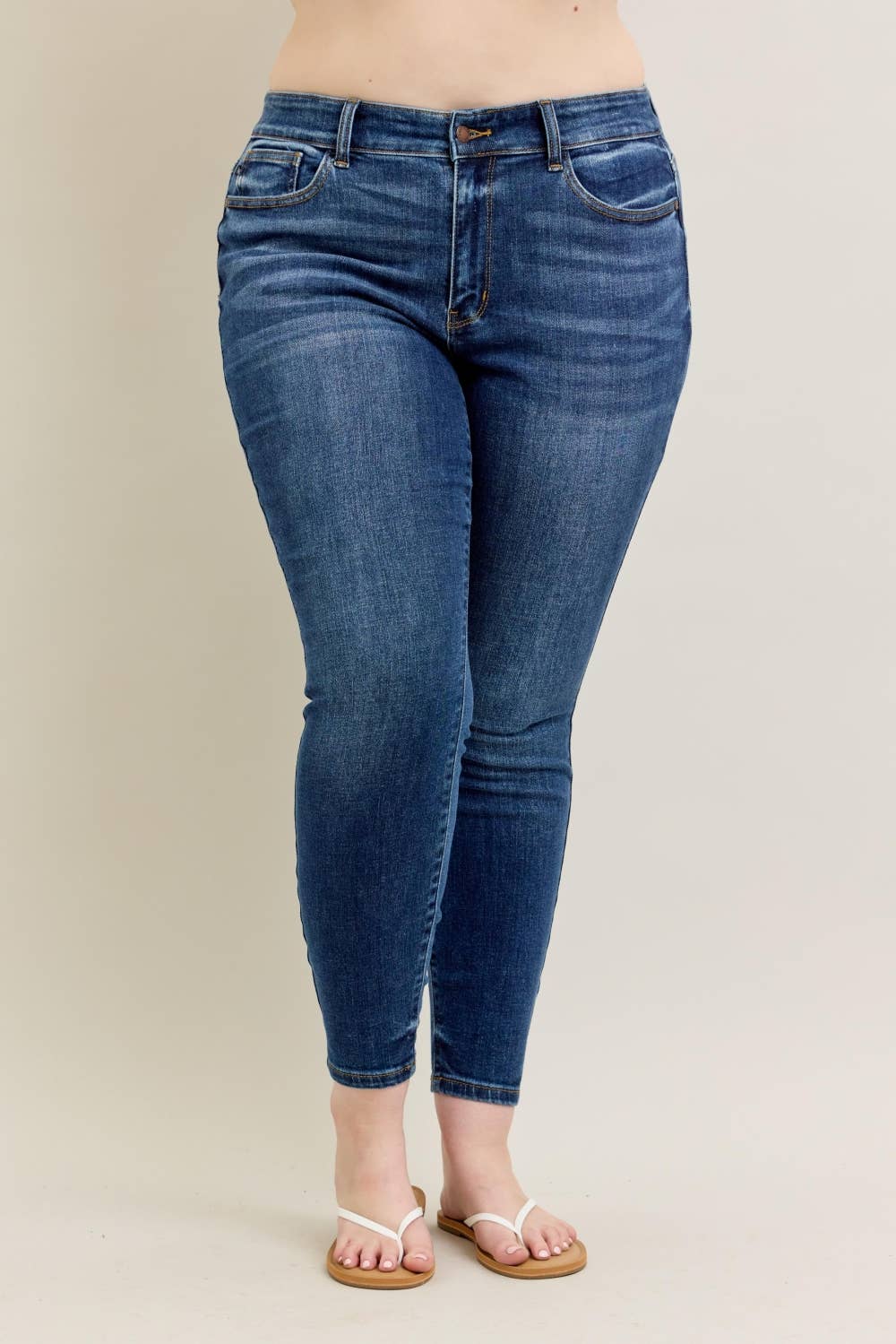 PLUS SIZE HIGH RISE BUTTON FLY SKINNY JEANS