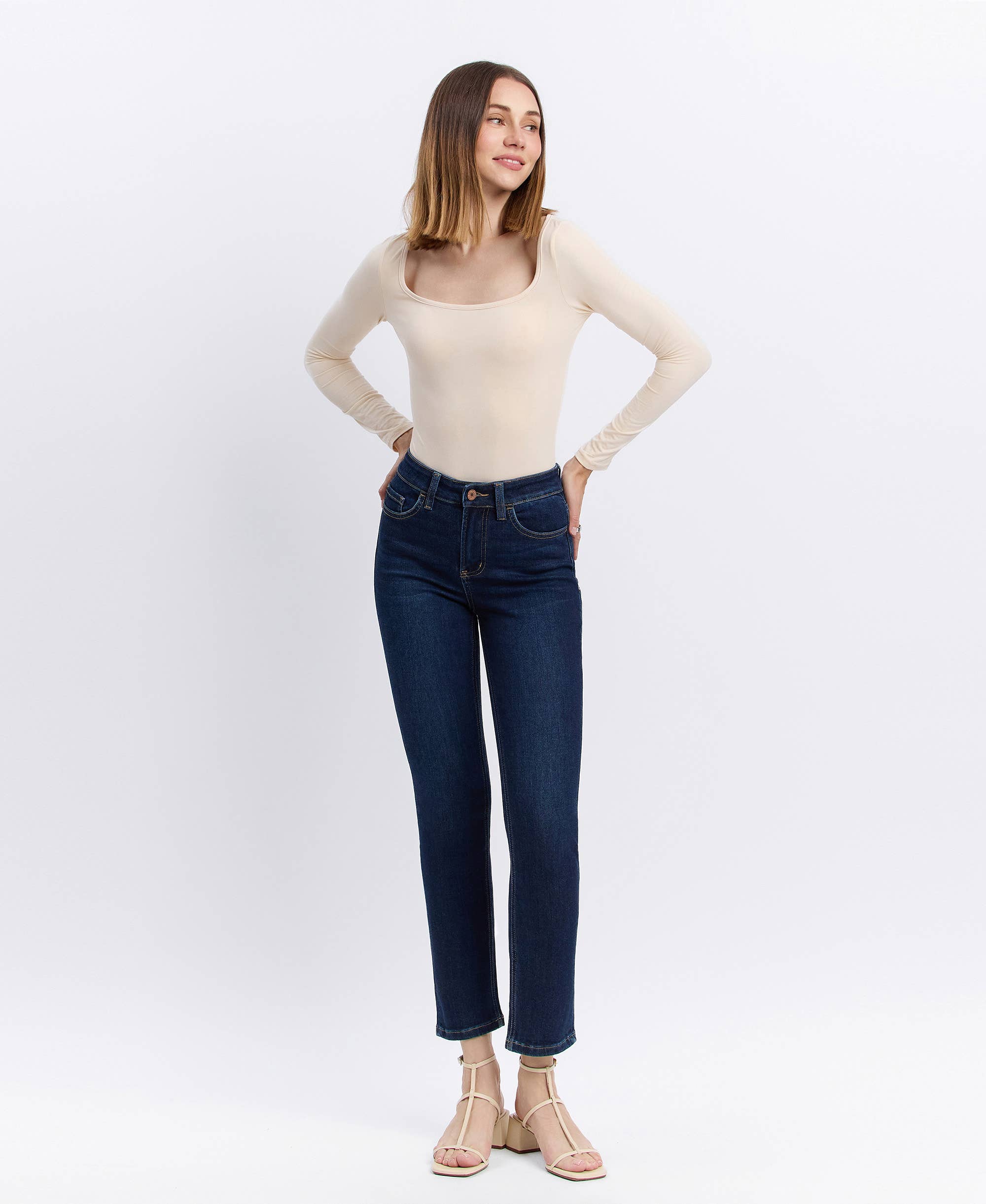 HIGH RISE ANKLE SLIM STRAIGHT JEANS