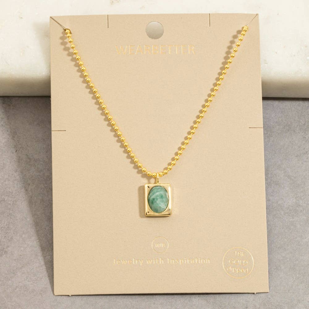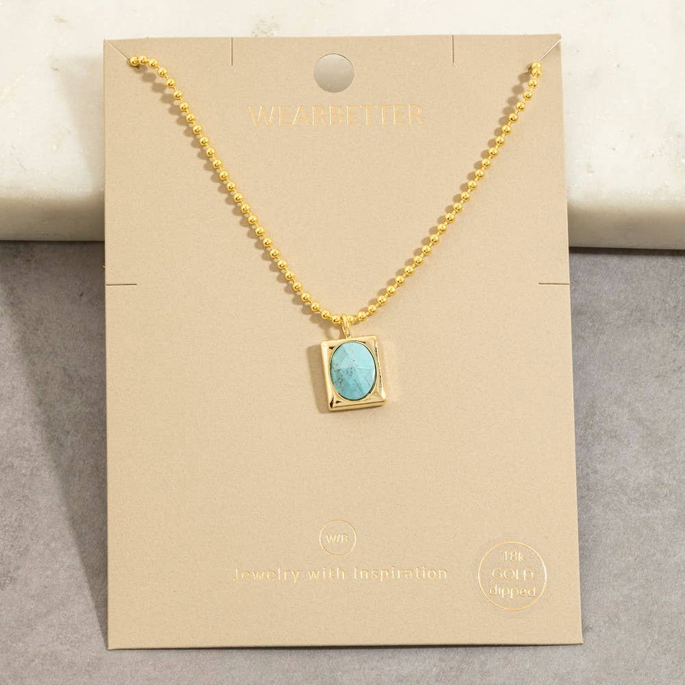 Gold Dipped Faceted Oval Stone Pendant Necklace