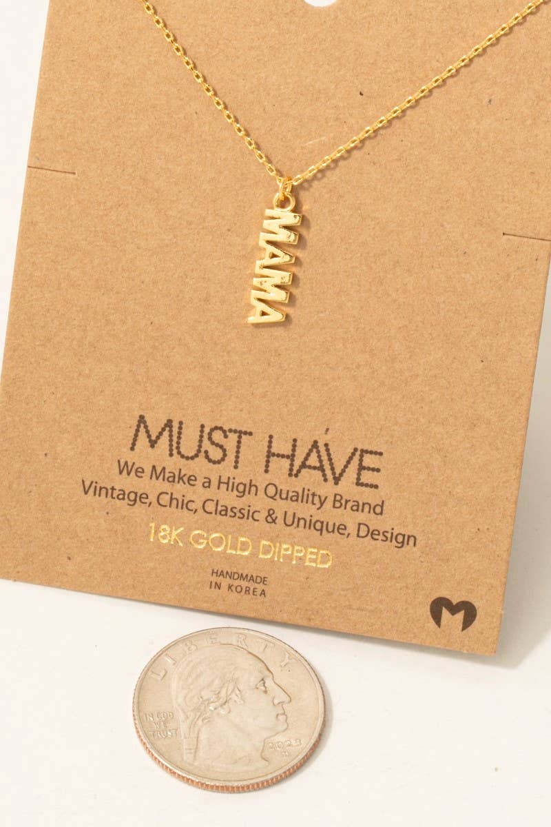 This trending necklace displays a vibrant gold dipped flat mama pendant necklace style. Unveil a new dimension of sophistication as this trending necklace effortlessly enhances the elegance of your ensemble.