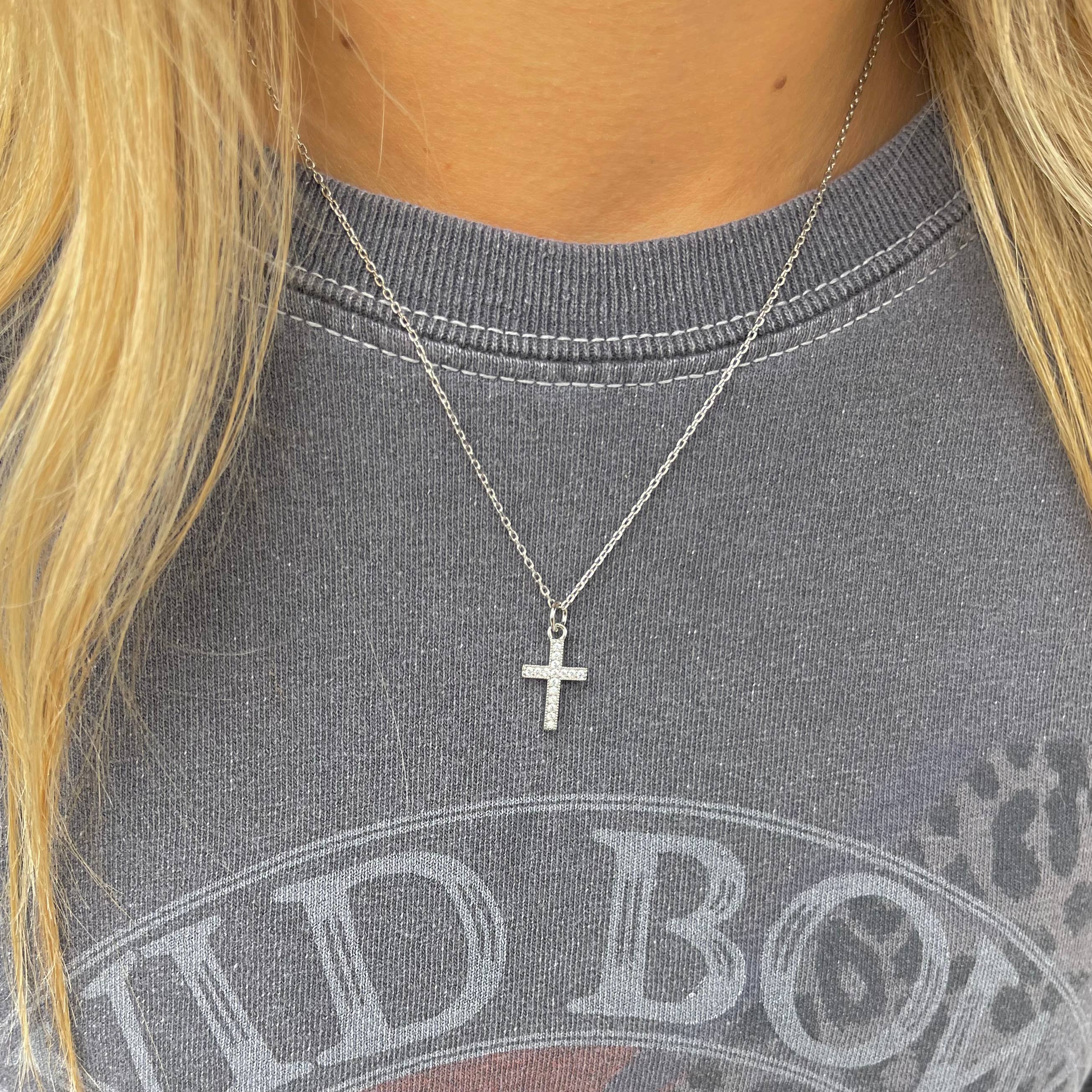 Silver Crystal Cross Necklace- Waterproof