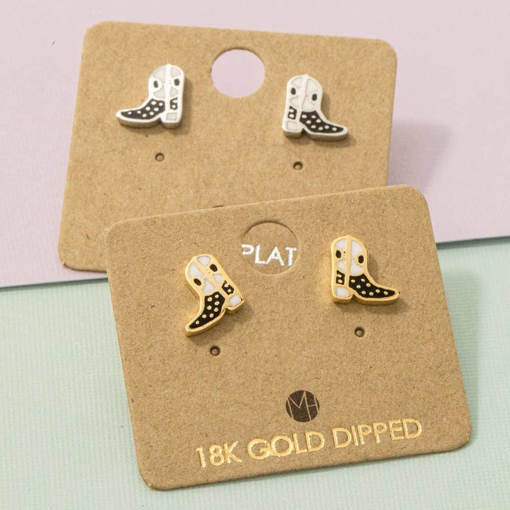 Gold Dipped Epoxy Cowboy Boots Stud Earrings