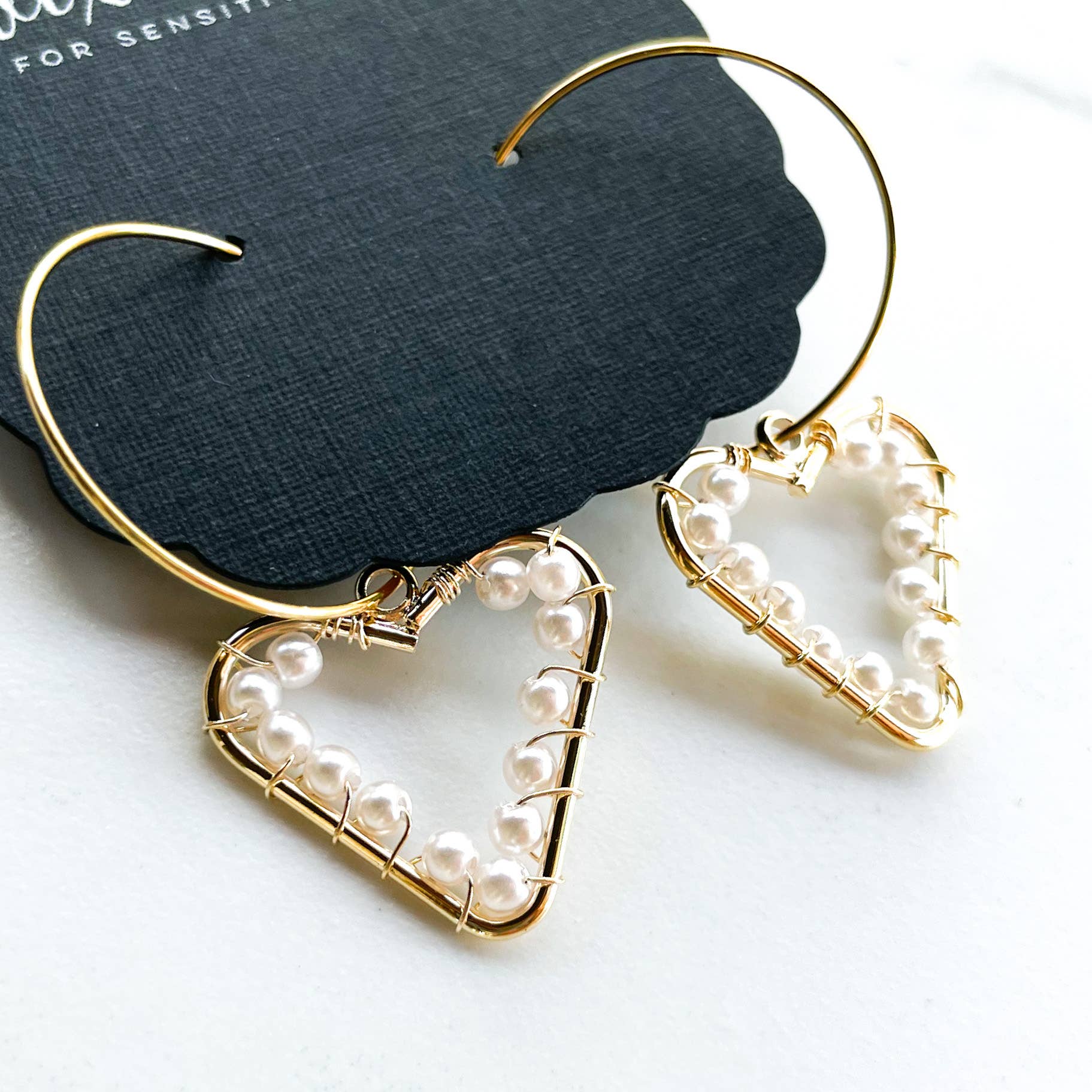 Gold Dipped Cz Pearl Champagne Charm Hoop Earrings