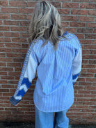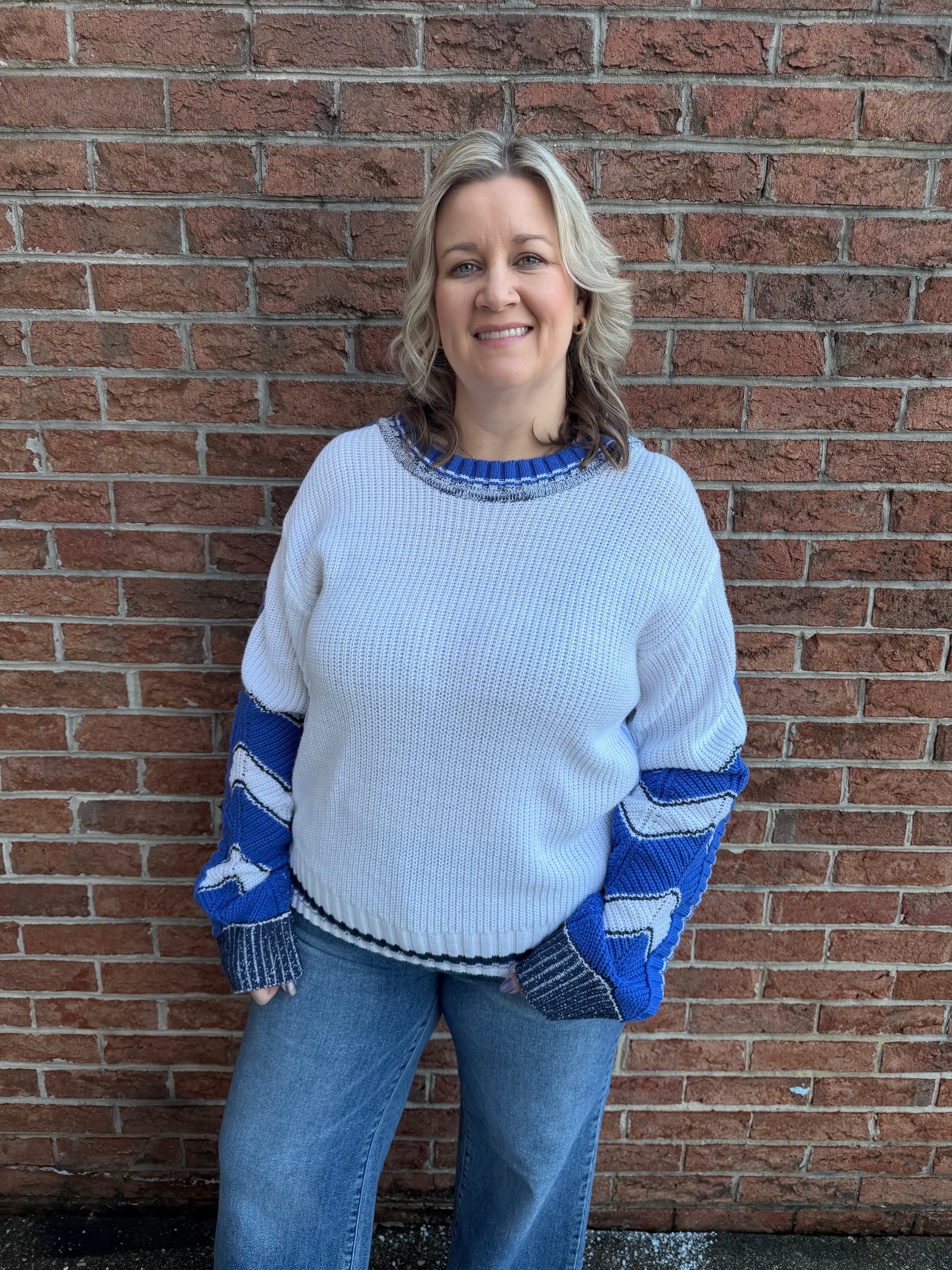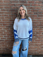 Blue and White Mixed Media Sweater