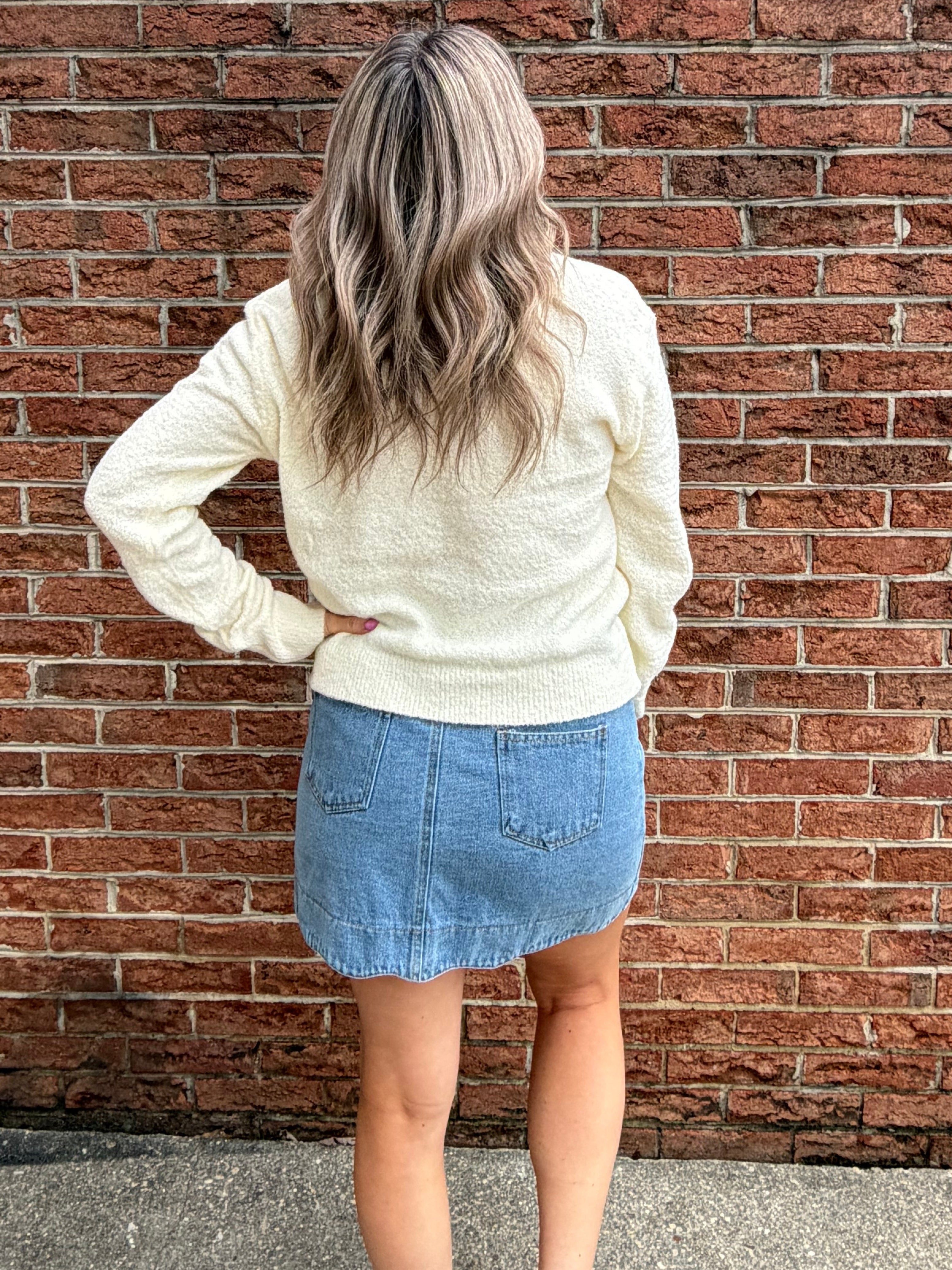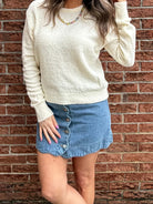 Elevate your casual wardrobe with the Buttoned Scallop Denim Skirt. Featuring a flattering A-line silhouette, a playful scallop-edge hem, and a button-down front, this skirt adds a touch of charm to any outfit. Perfect for pairing with your favorite sneakers or sandals for an effortlessly chic look.
