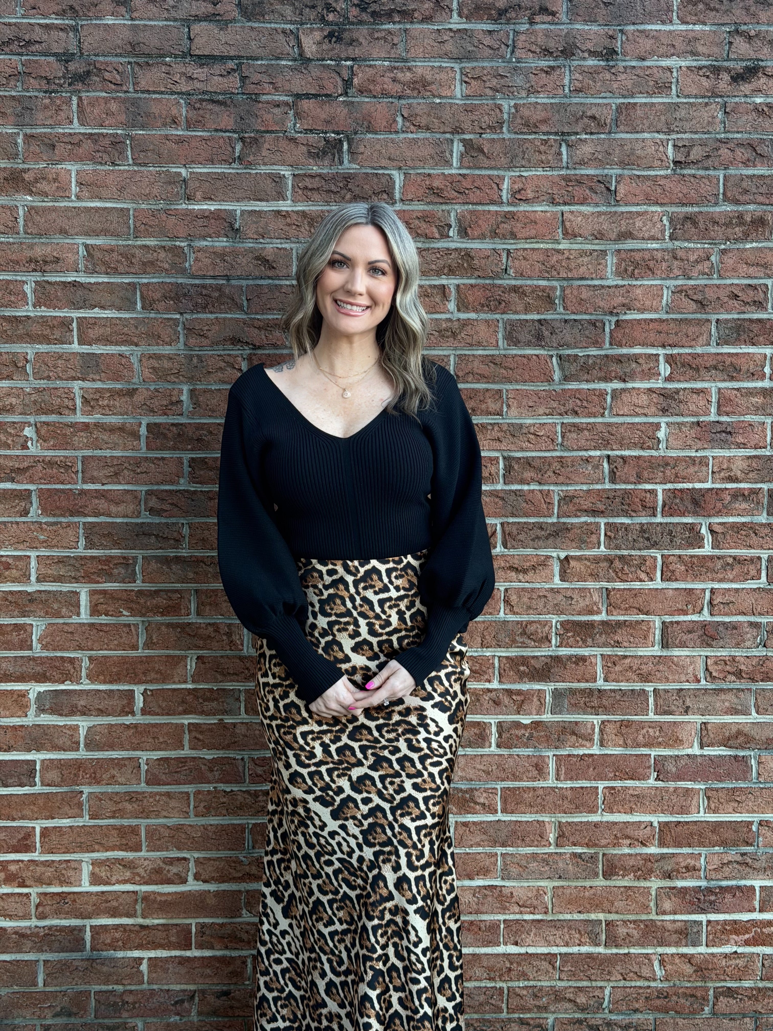 - Deep V-neck line - V-back - Beautiful balloon sleeves - Ribbed knit sweater - Pullover style - Comfortable to wear.