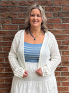 This Knitted Tie-Front Cardigan offers a cozy yet stylish look, perfect for layering. Made from soft, breathable fabric, it features a flattering tie-front design that adds a touch of elegance. Whether dressed up or down, this versatile cardigan is ideal for any season and pairs easily with jeans, skirts, or dresses for a chic, effortless outfit.