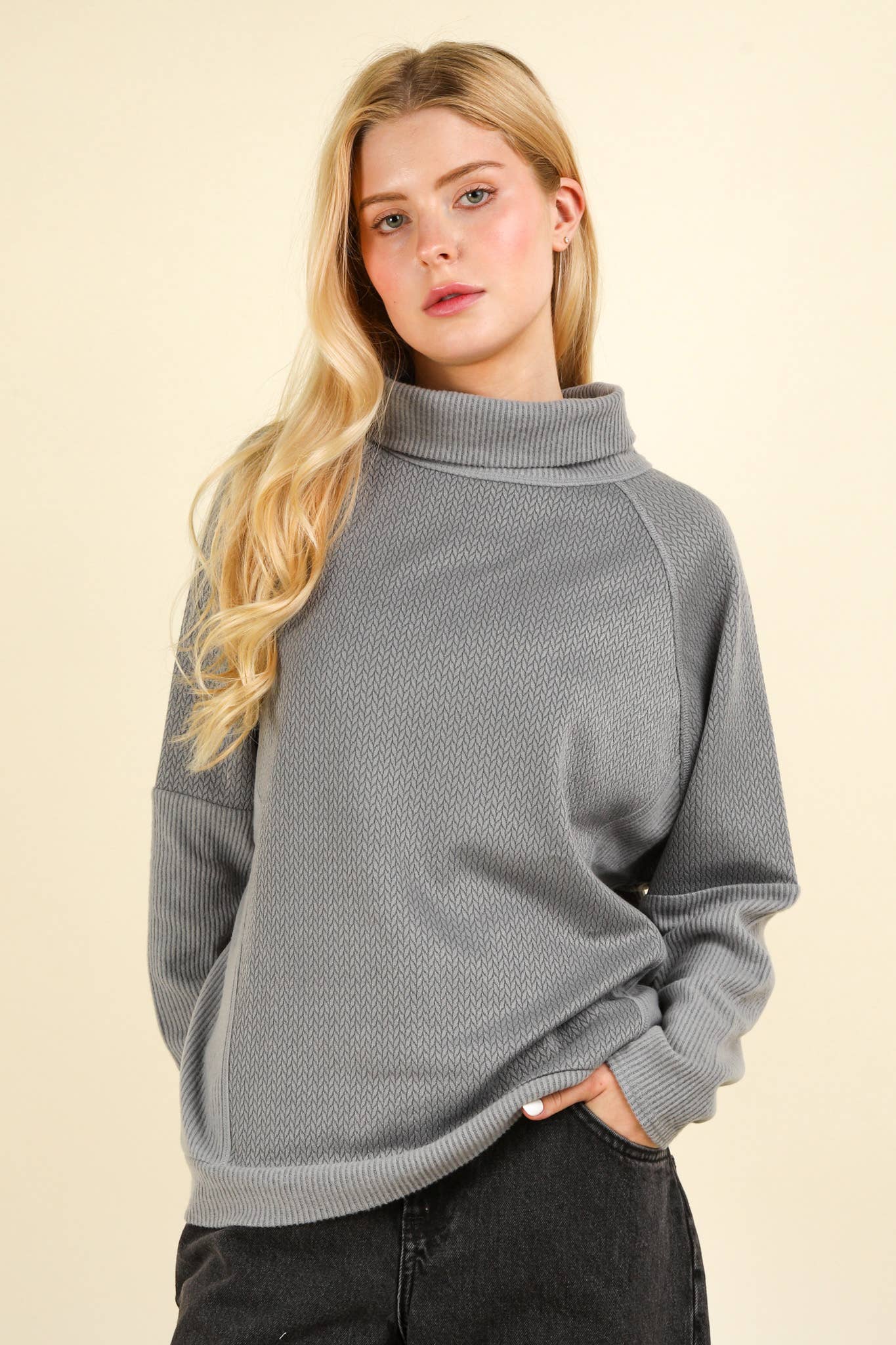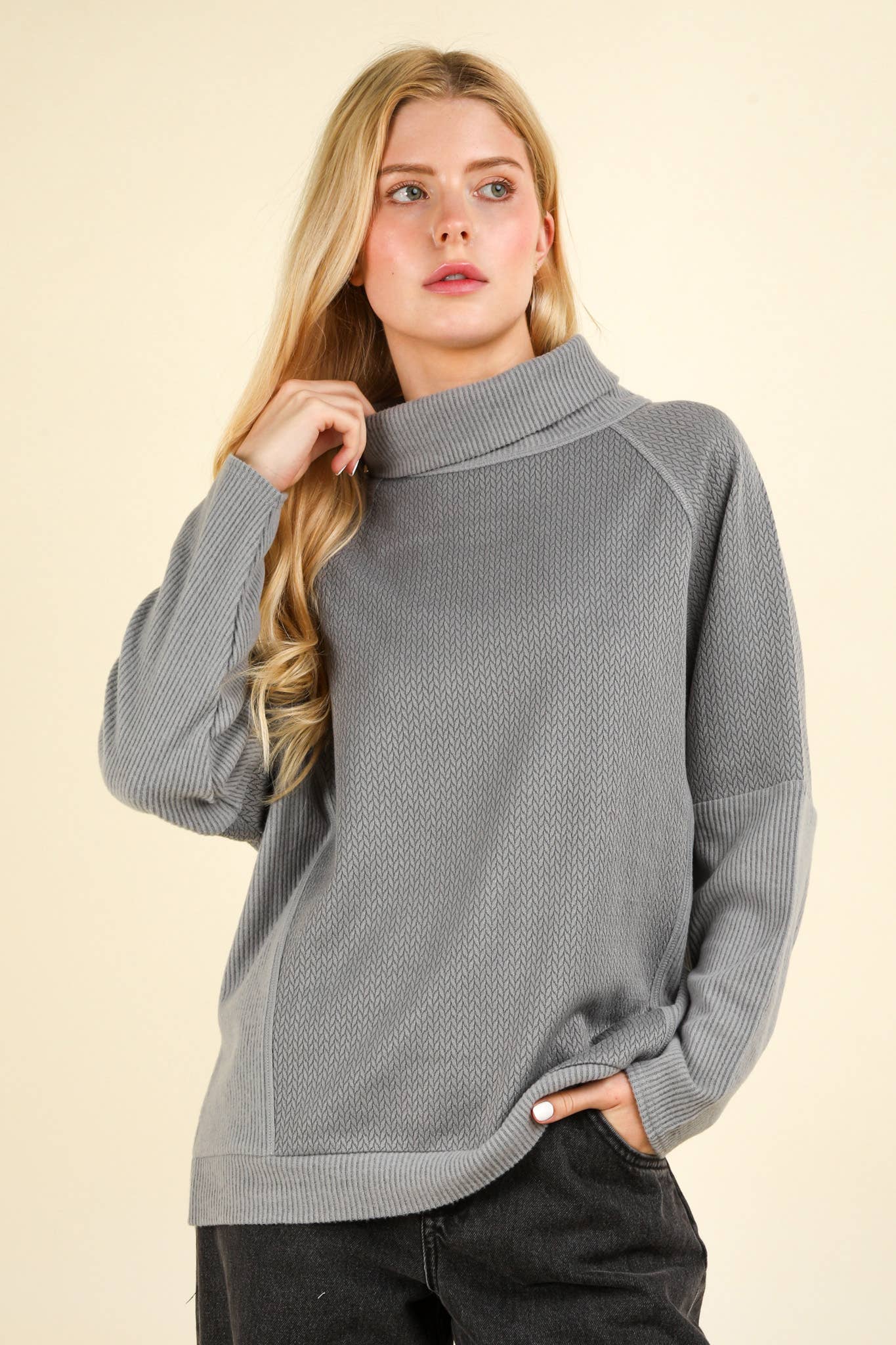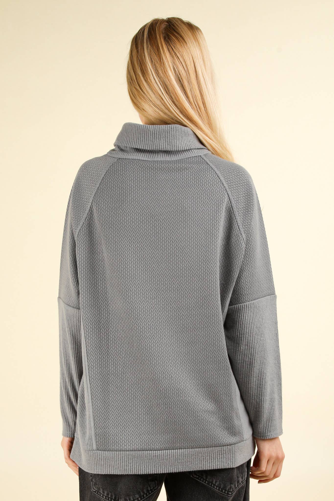 PLUS SIZE Contrast Soft Knit Mock Neck Oversized Top - Long Dolman Sleeve - High Neck - Drop Shoulder - Side Slit - Hi-Lo Hem