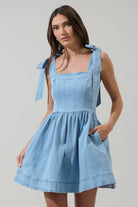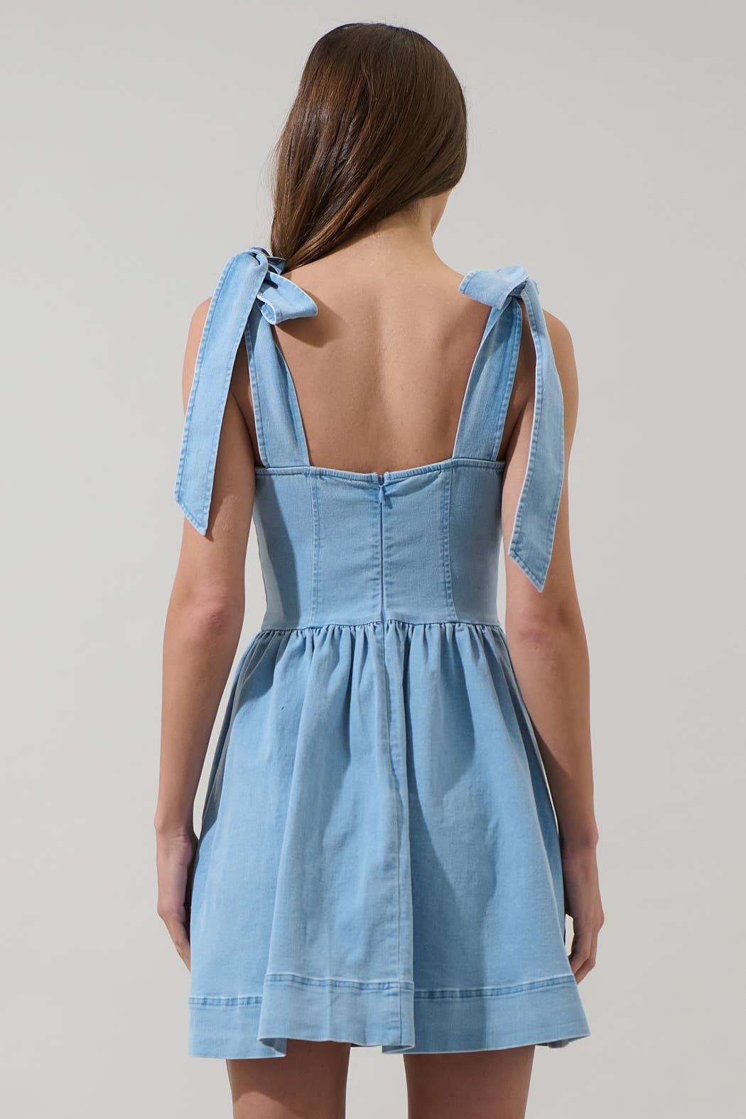 Sujey Denim Tie Strap Mini Dress: LightDenim / S