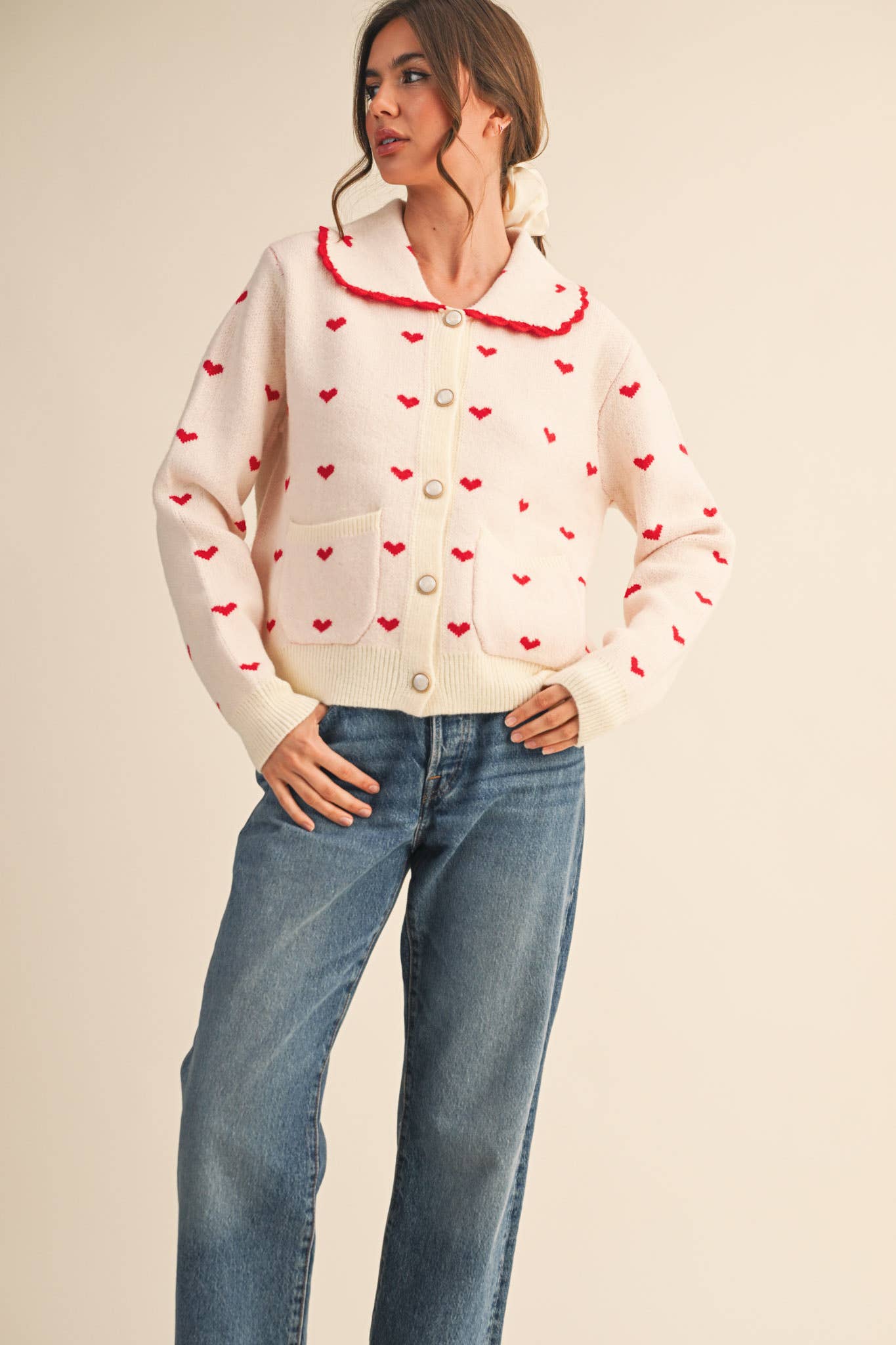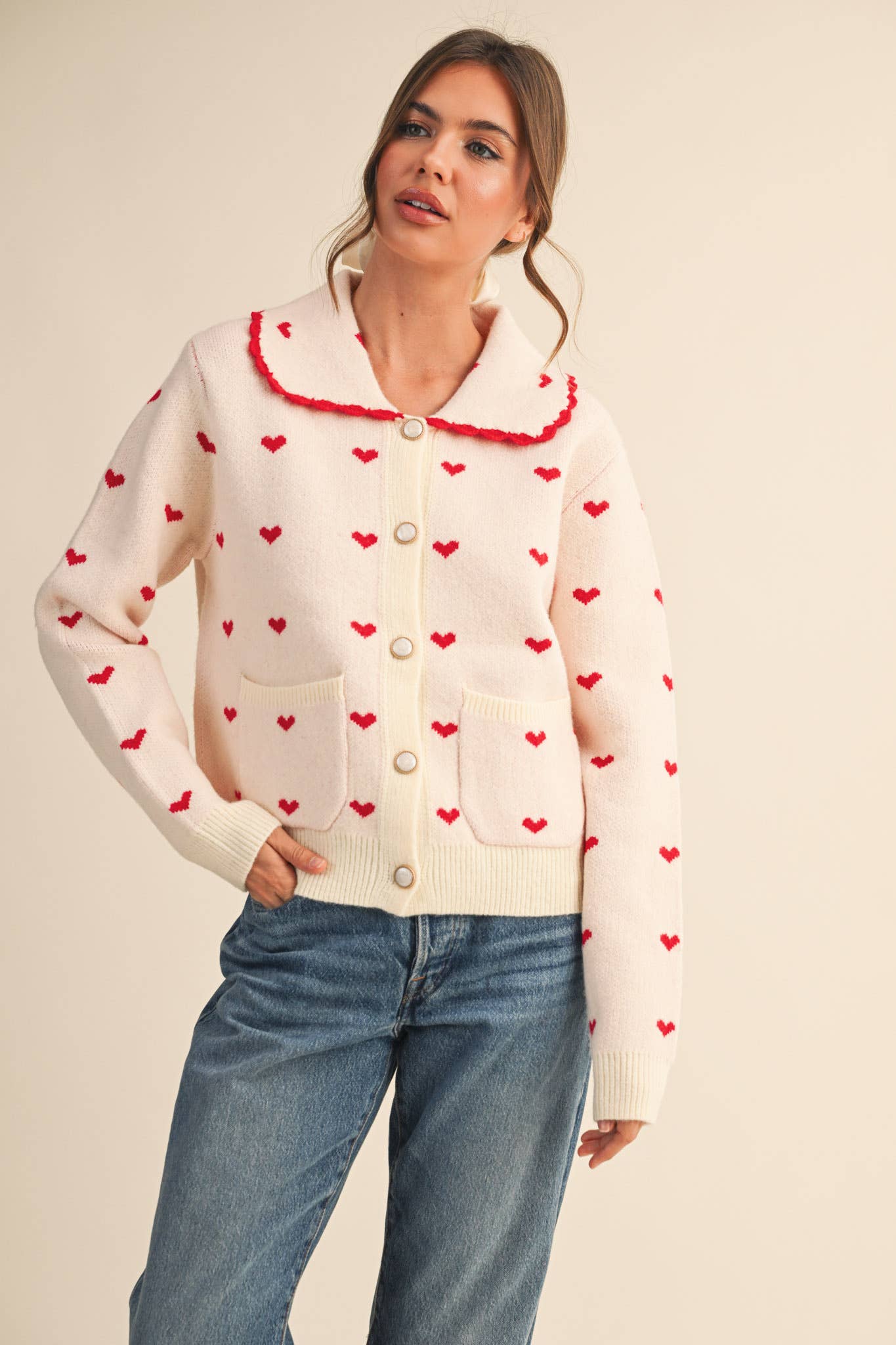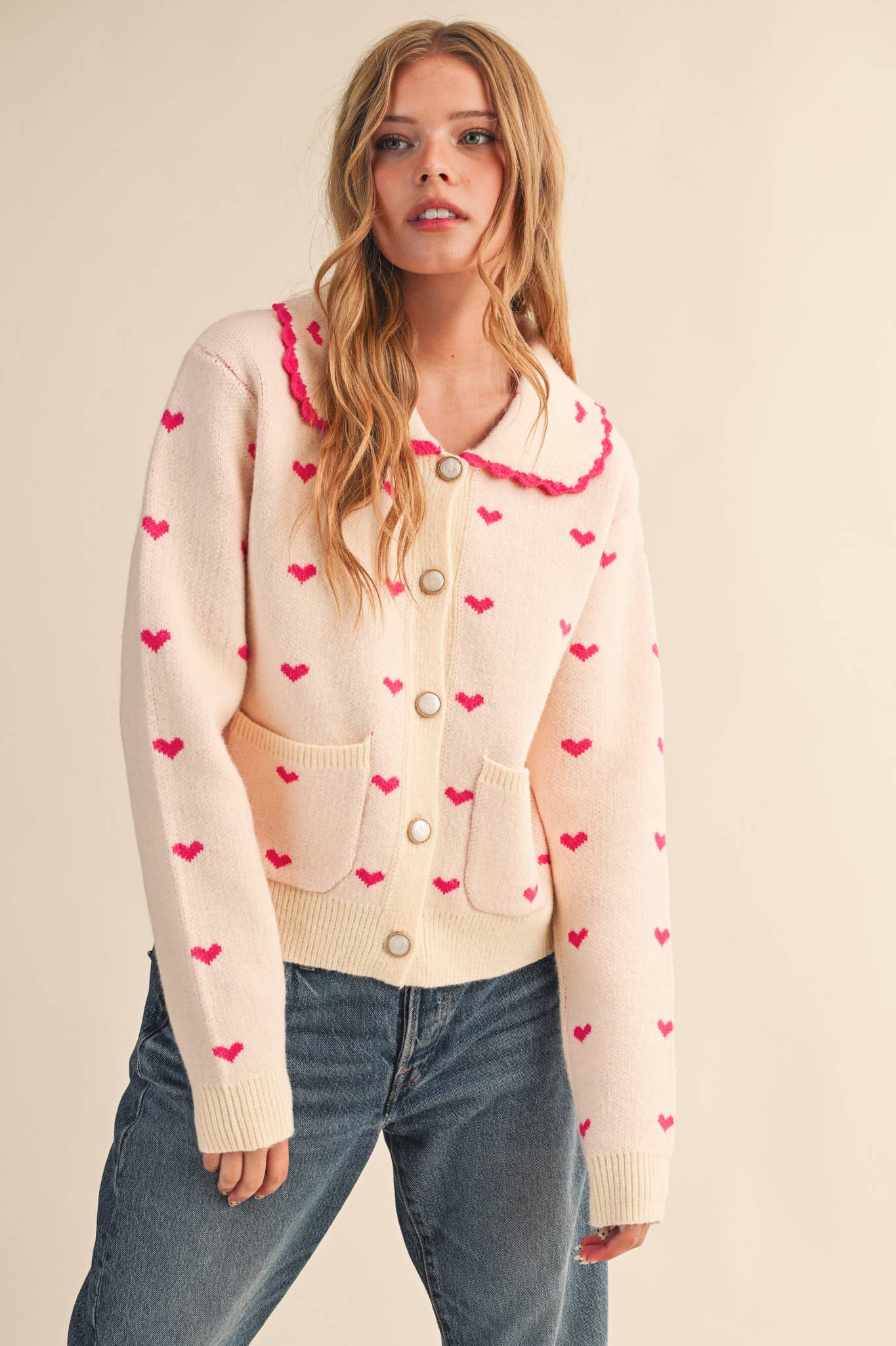 DOLL COLLAR HEART KNIT SWEATER CARDIGAN