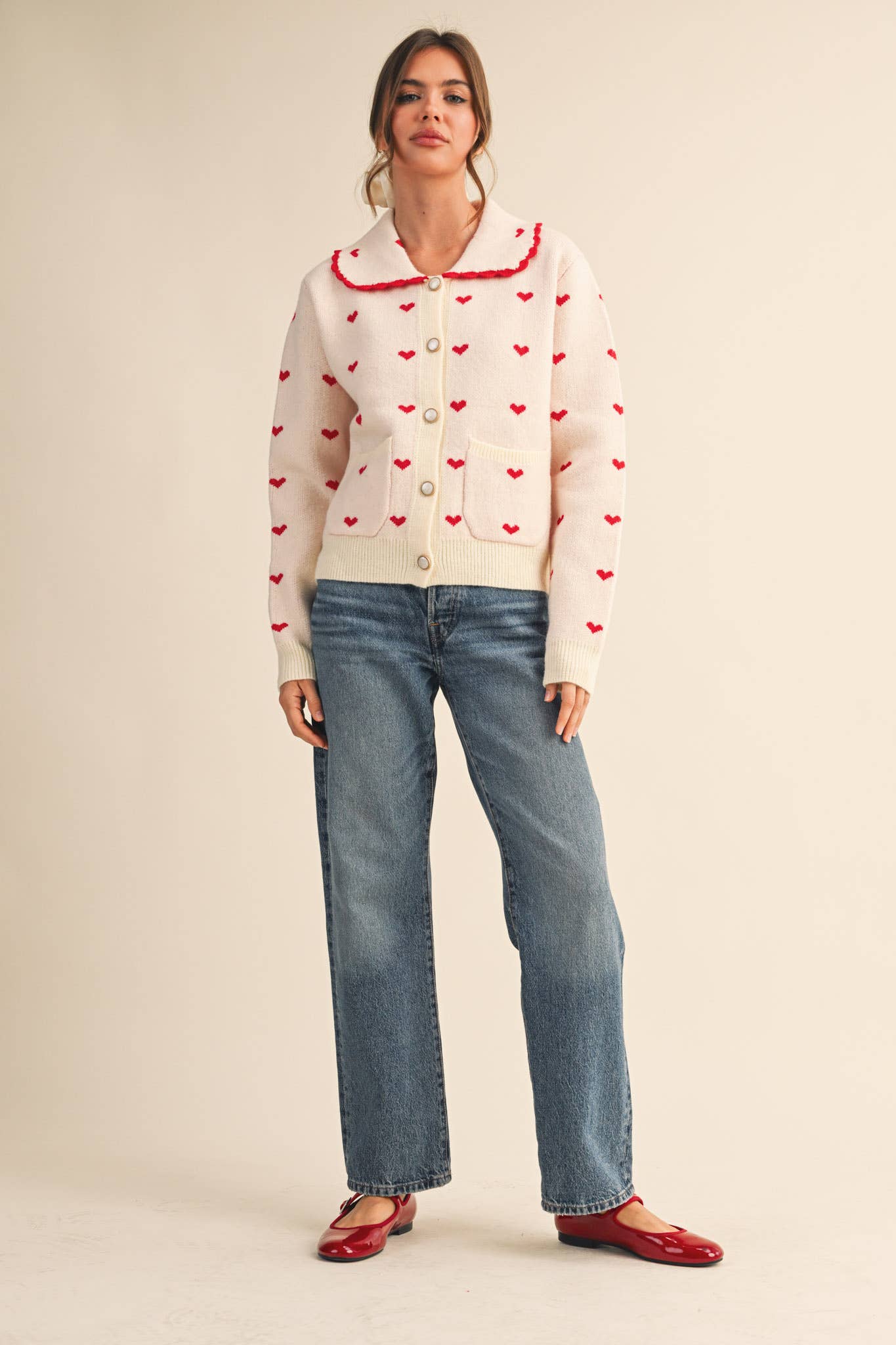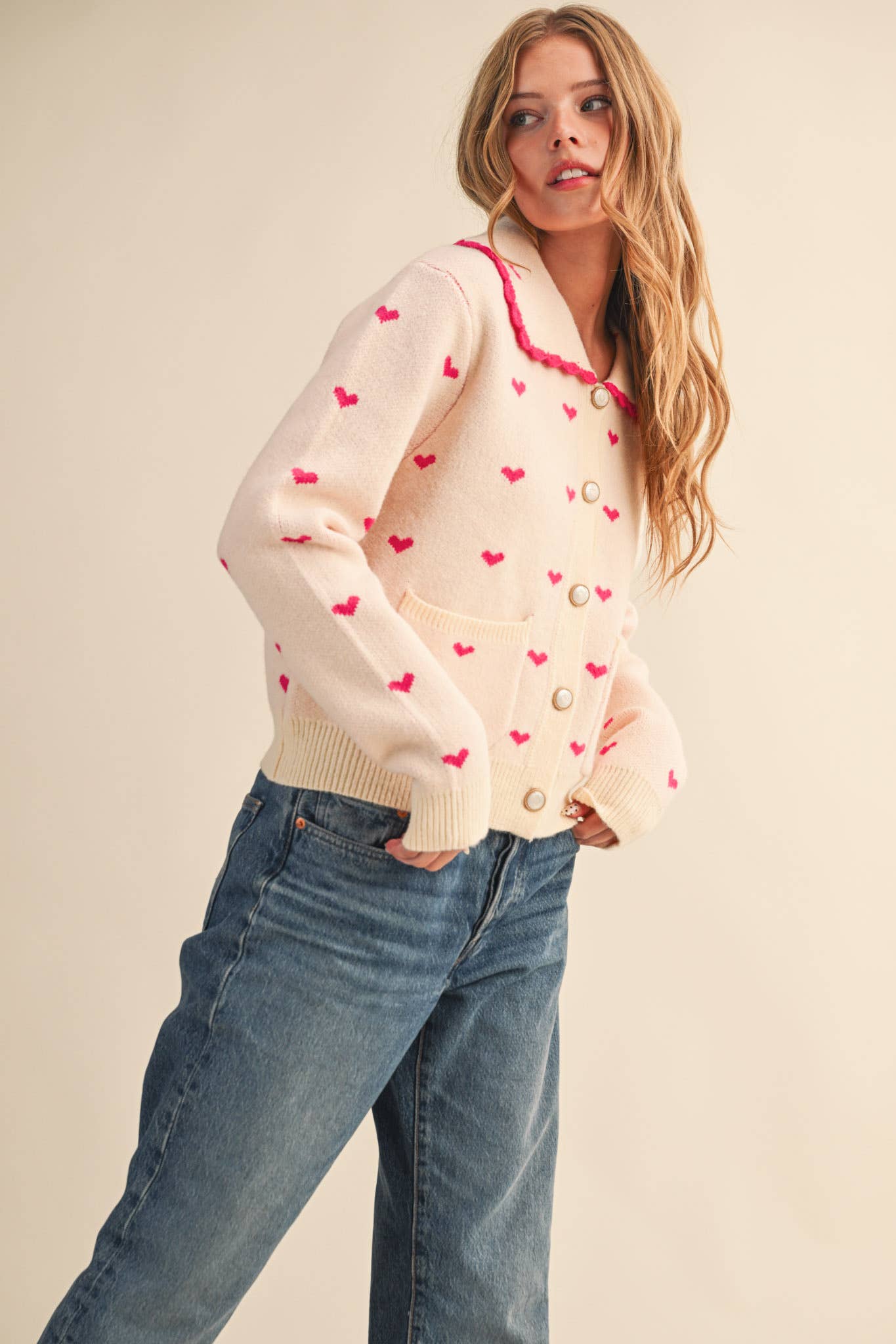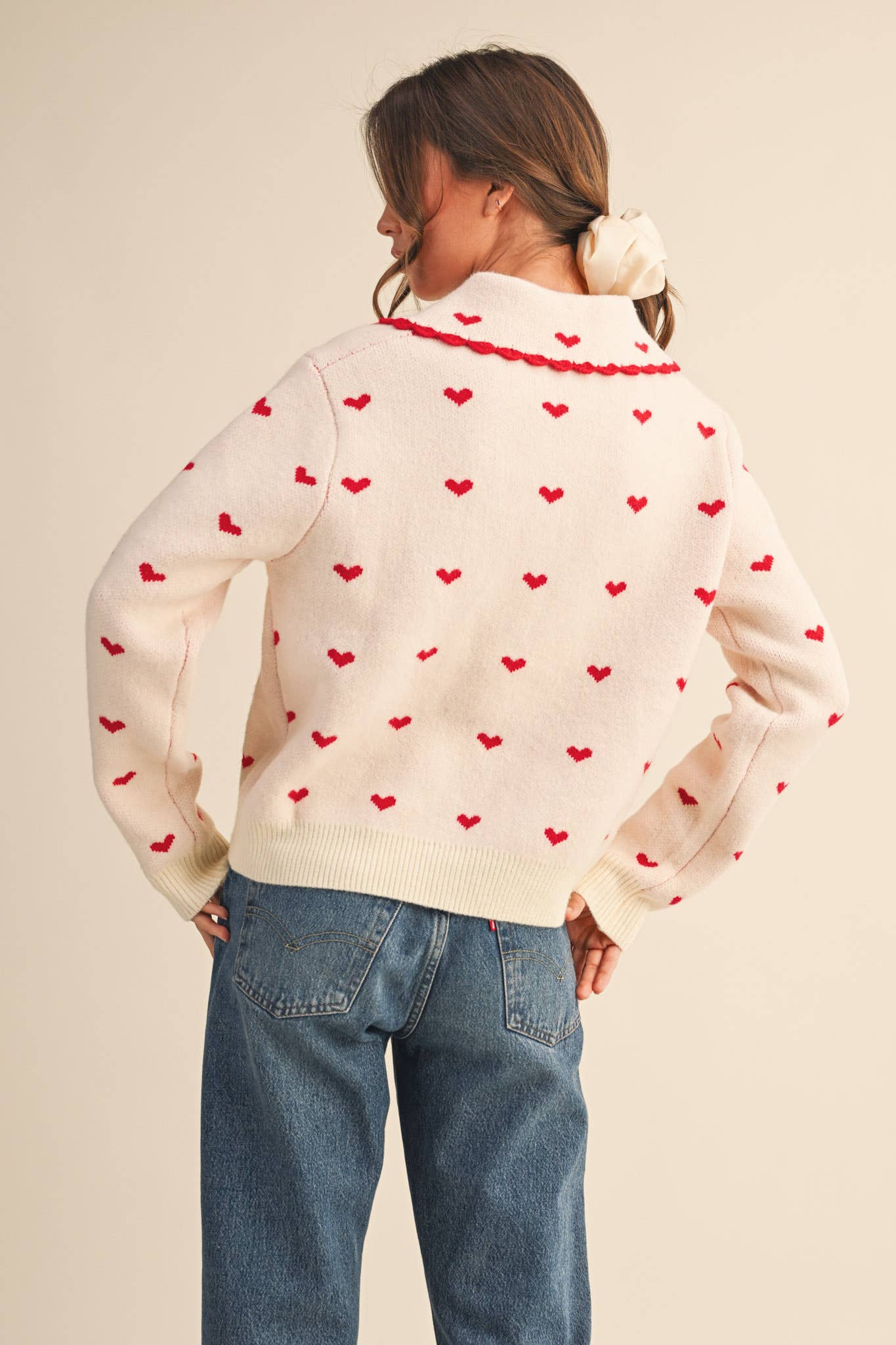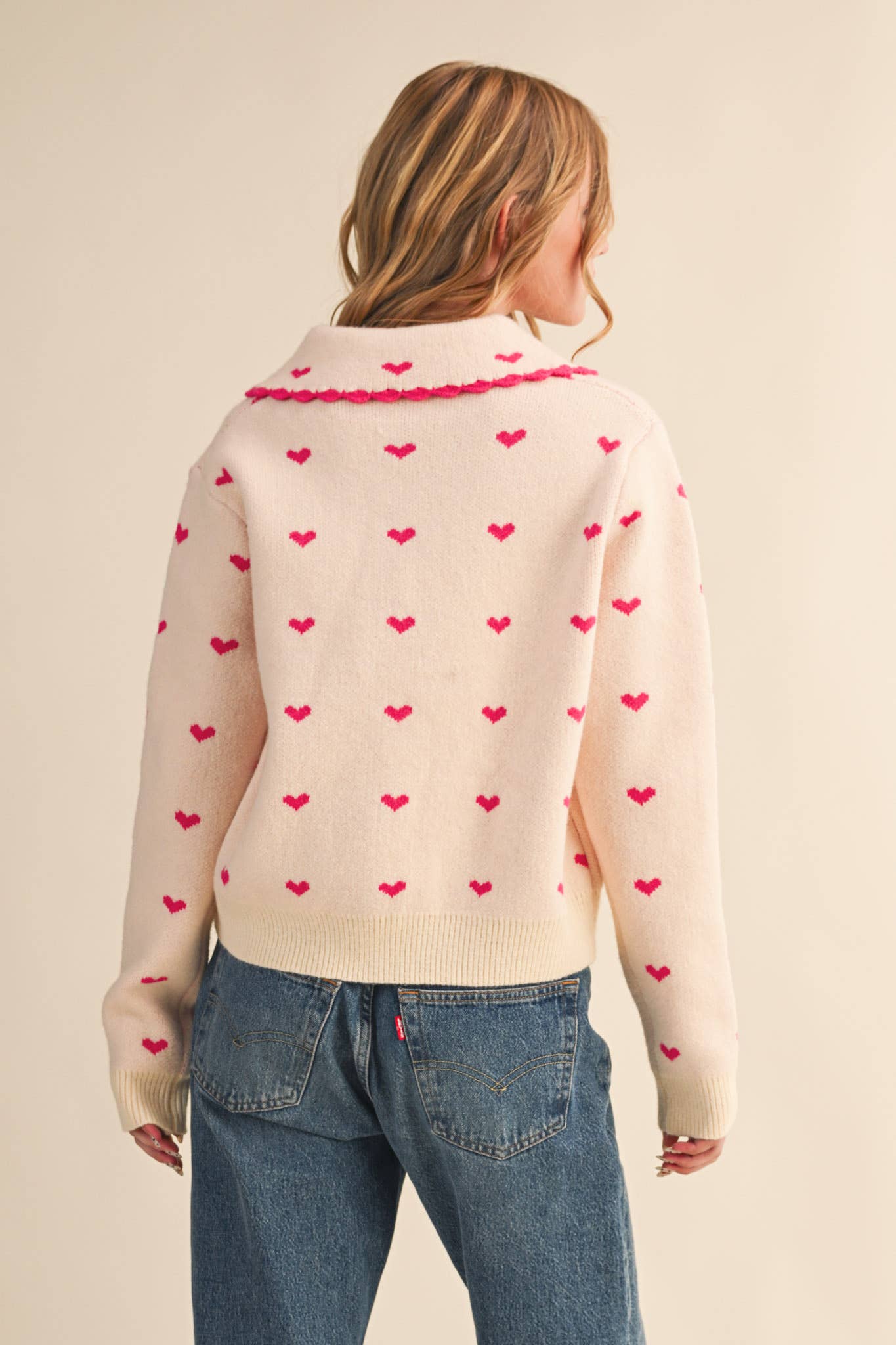 DOLL COLLAR HEART KNIT SWEATER CARDIGAN